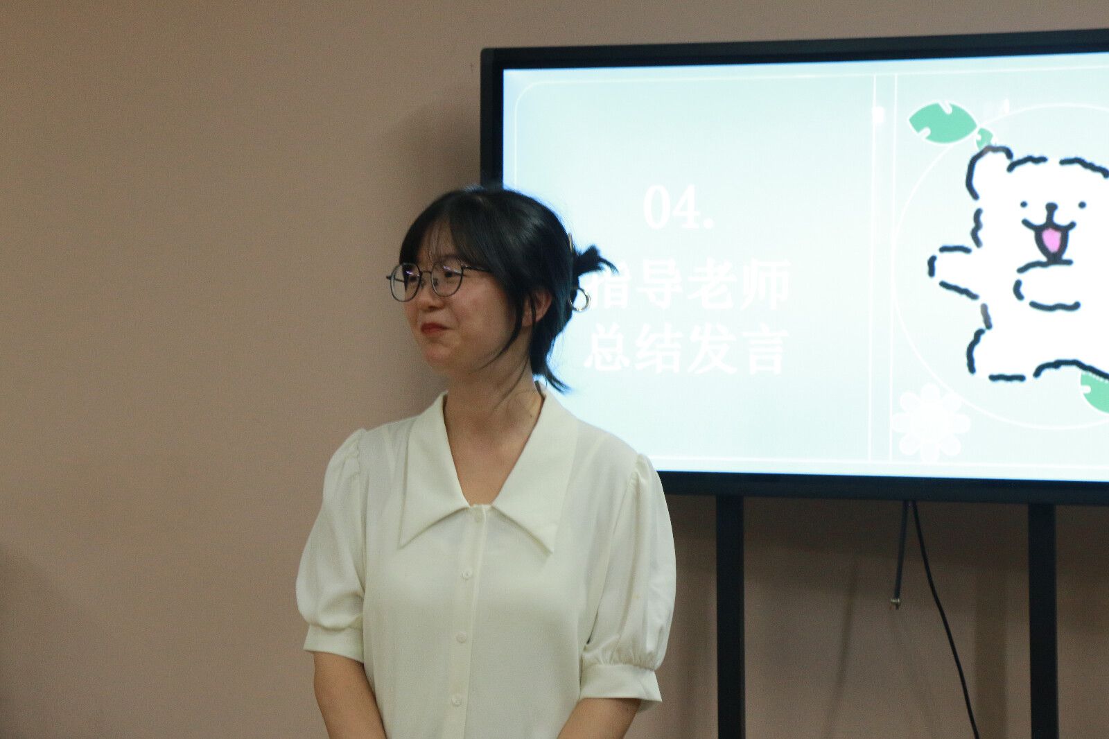 身心发展部指导老师林倩也对本次培训做简单总结,她强调心理健康工作是一项长期而艰巨的任务,需要持之以恒地努力与探索。她鼓励大家保持学习的热情,不断提升自我,同时注重团队协作,携手并进,共同书写身心发展部的新篇章,为戏剧影视学院的心理健康事业添砖加瓦。