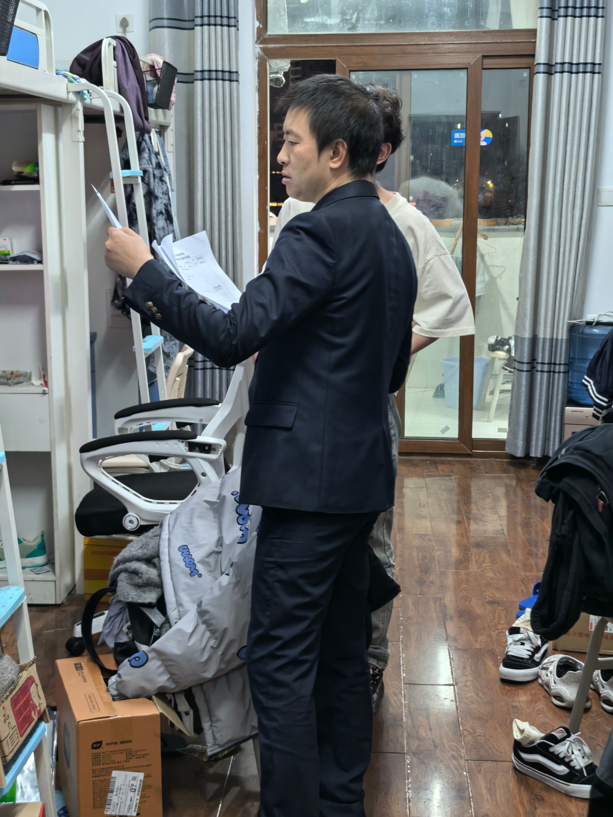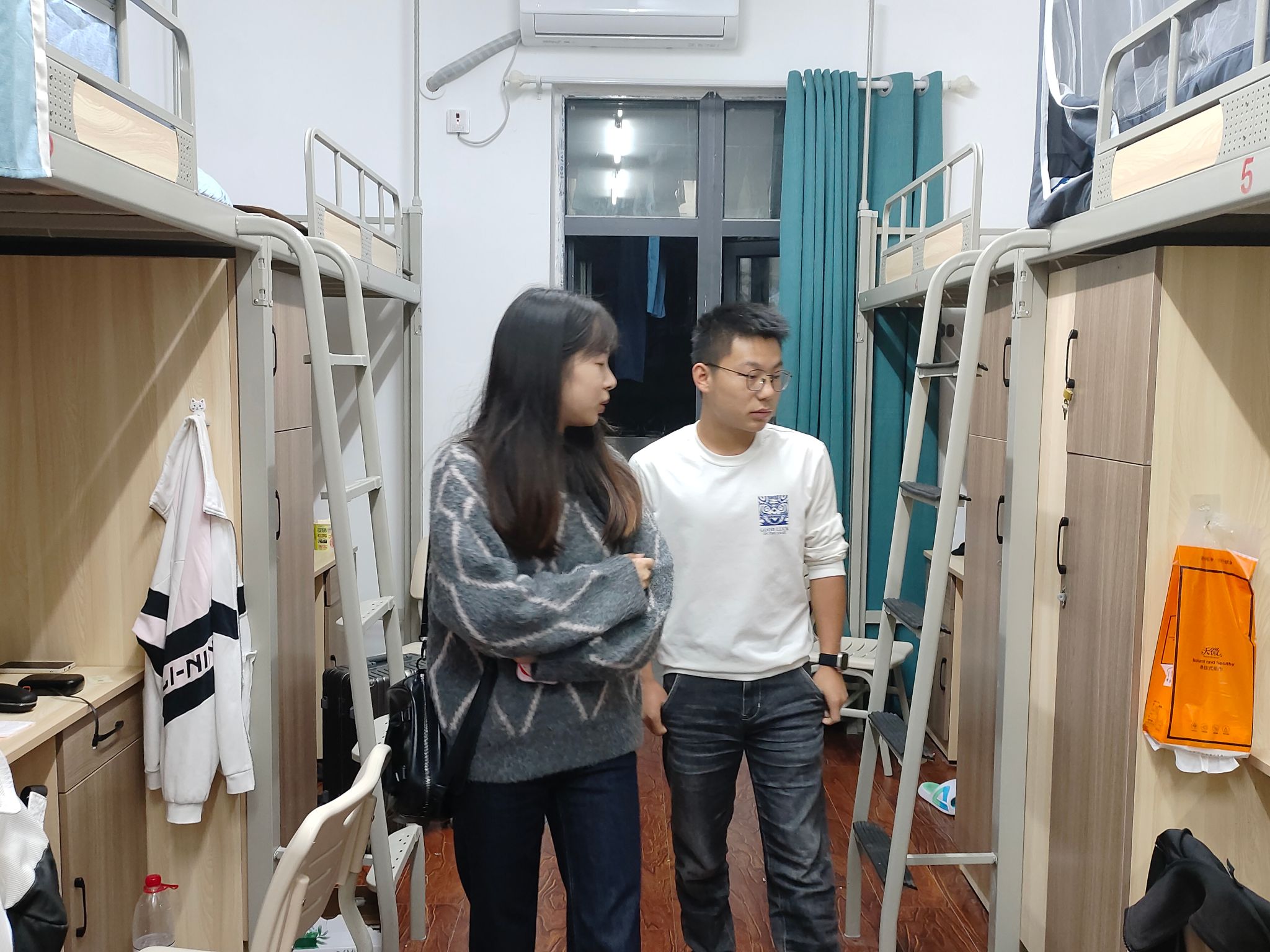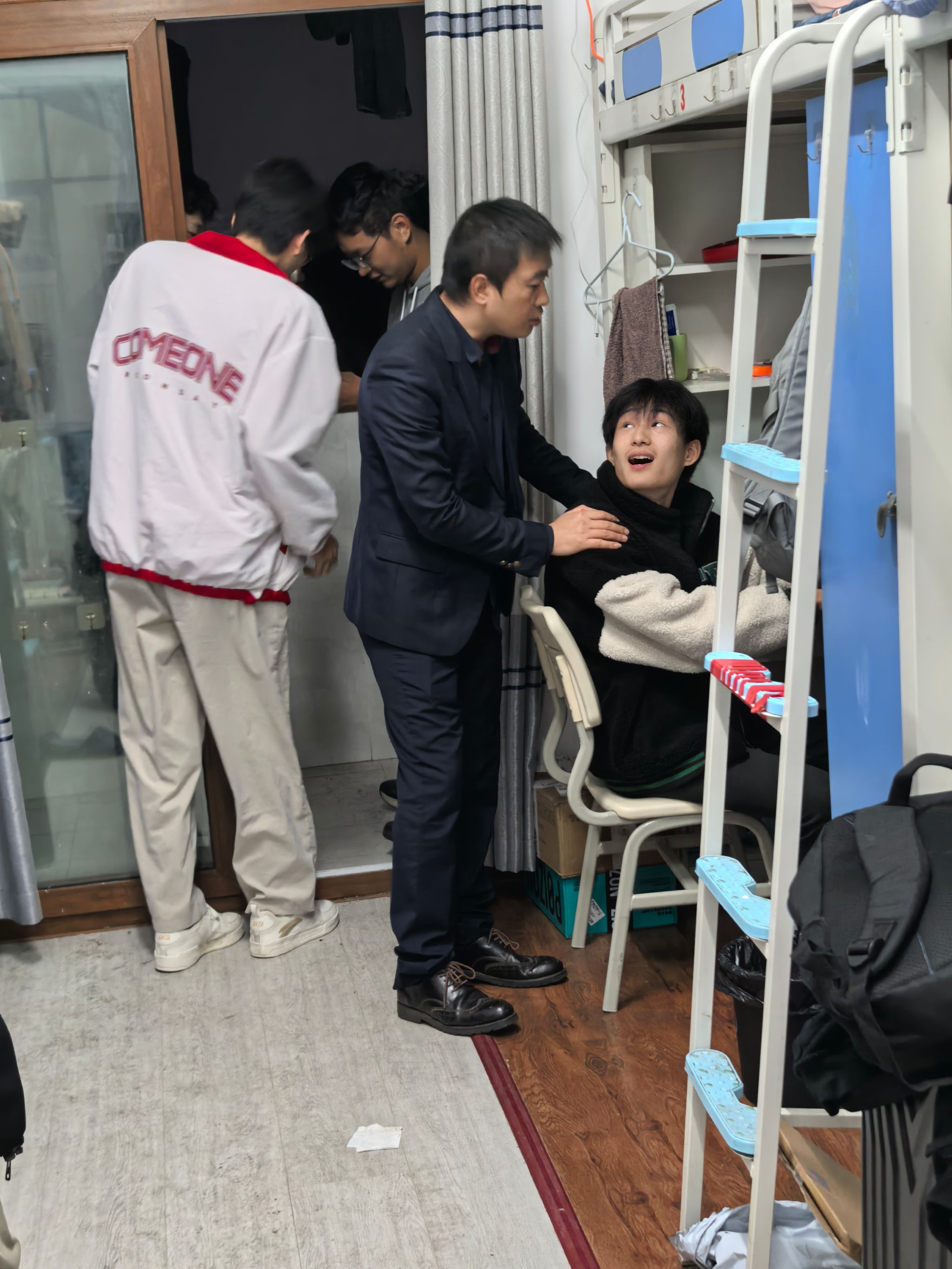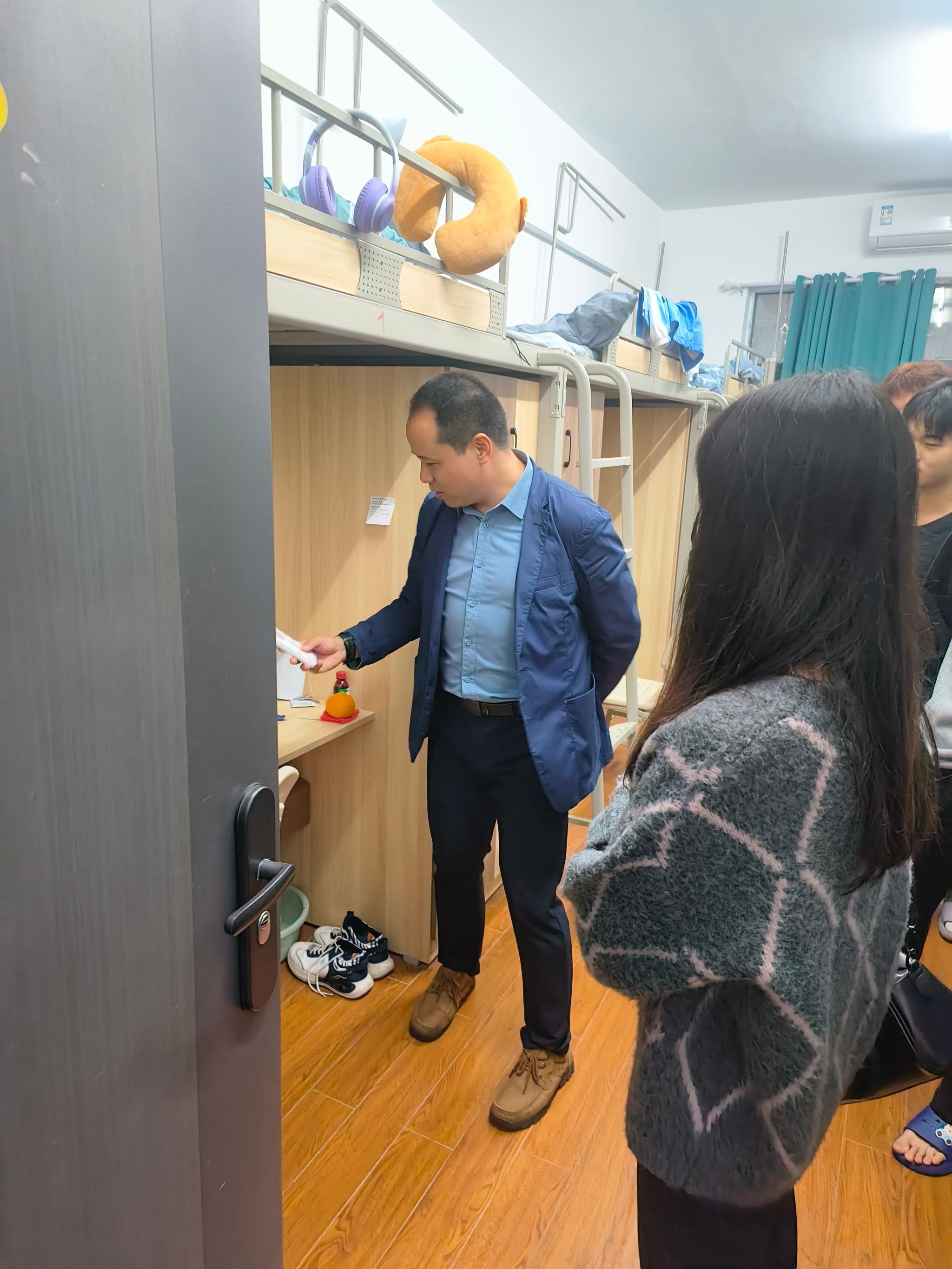 同时,老师们对同学们的宿舍卫生和生活环境表示关心,鼓励大家保持良好的个人和公共卫生习惯,营造温馨舒适的宿舍氛围。同时,还与同学们亲切交流,了解他们在学习和生活上是否遇到困难,叮嘱同学们要注意作息规律,互帮互助,共同营造良好的宿舍文化。