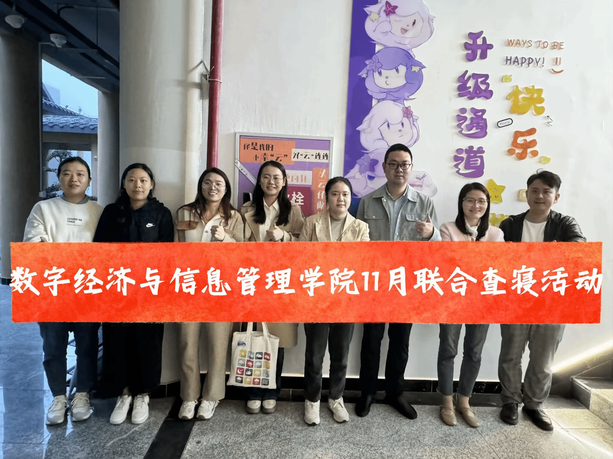 为提升学院学生的安全意识,加强学风建设,预防流感等季节性疾病,数字经济与信息管理学院于11月6日下午17:30开展了11月联合大查寝活动。学院学工办主任任超群、团总支书记潘锐及全体辅导员深入学生寝室,为同学们带去关心与温暖,旨在了解学生宿舍生活状况,排查安全隐患,同时加强反诈骗教育,提升学生的自我保护能力。