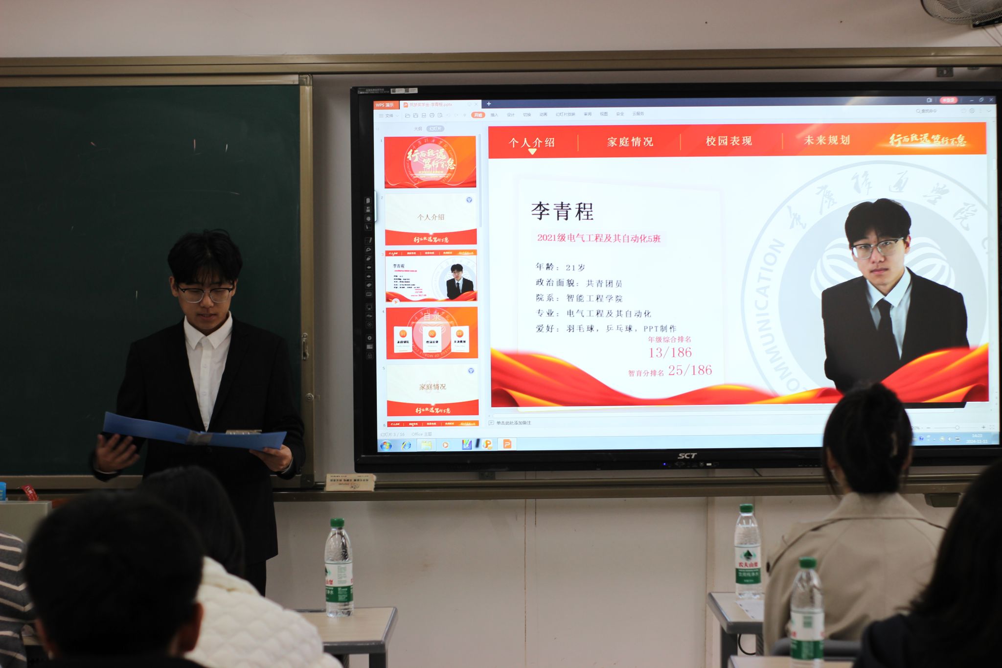 在个人陈述环节,每位答辩者都精心准备了PPT和演讲稿,围绕自己的学业成绩、科技创新、文体竞赛、社会实践以及个人成长等方面进行了全面而深入的阐述。他们分享了自己在专业领域内的研究成果和学科竞赛,讲述了自己参与社会实践活动的经历和感悟,展示了自己在完满活动中的蜕变和成长。同学们纷纷表示,在不断前进的道路上,他们会更加坚定理想信念,勇往直前,用自身实力诠释筑梦移通人,用实际行动定义逐梦智工人。