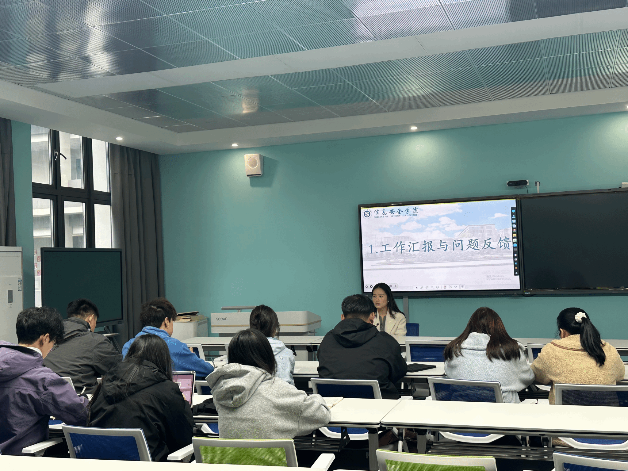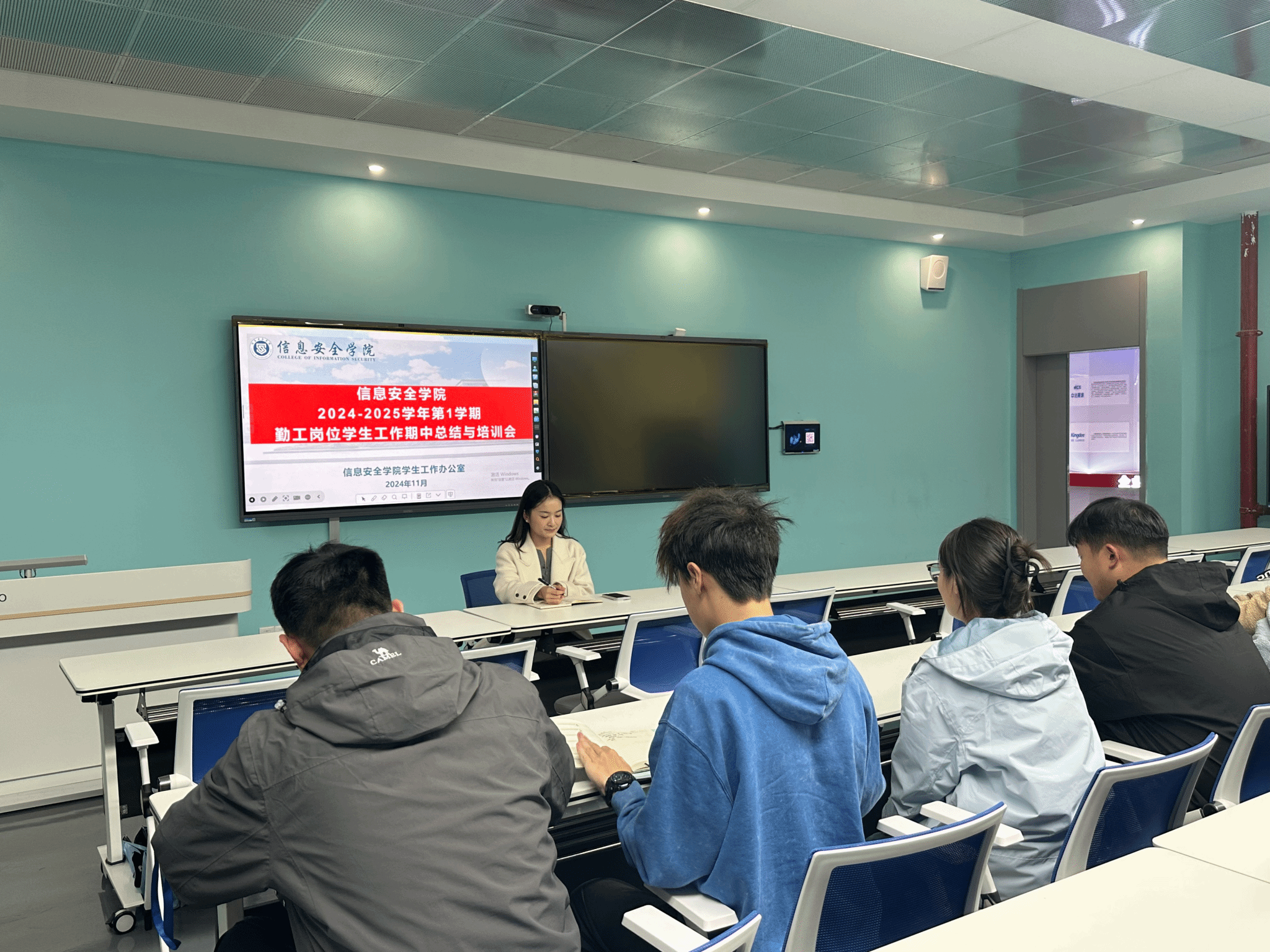 为进一步提升信息安全学院勤工助学岗位学生工作成效,更好地服务学生成长成才,信息安全学院于11月19日中午12点在贤者楼217开展了勤工助学岗位学生工作期中总结与培训会,李阳老师主持会议。