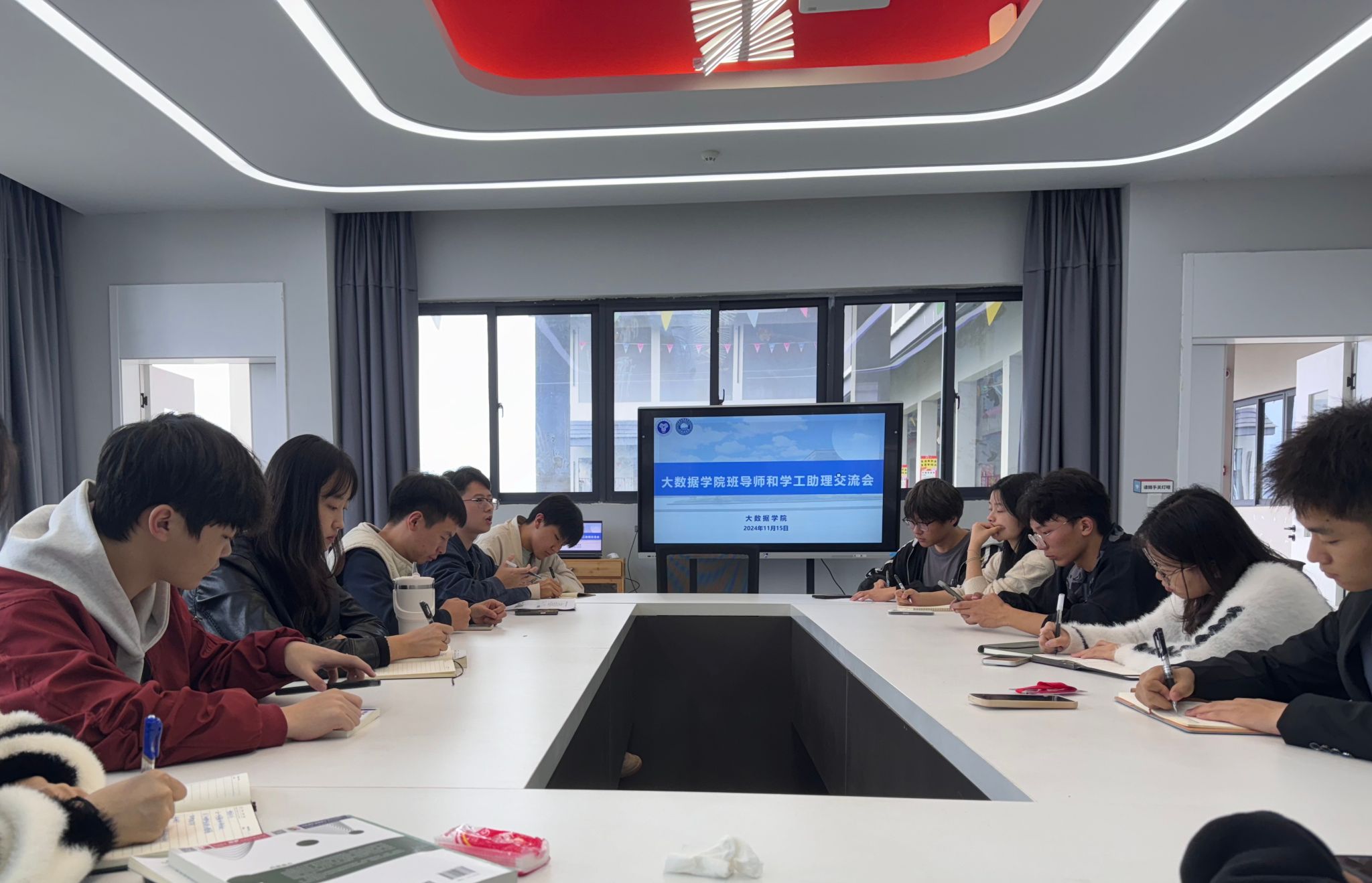 为了进一步提升学生工作管理水平,加强班导师与学工助理之间的沟通与协作。2024年11月15日,大数据学院组织开展了班导师与学工助理的11月工作交流会。辅导员孙权伟老师肯定了同学们的工作和付出,提到了日常工作中存在的短板和弱项,希望大家主动调整和做出改变。大家在会上积极分享工作经验,探讨当前学生工作中面临的问题,并共同寻找解决方案,形成工作合力,共同推动学生工作再上新台阶。