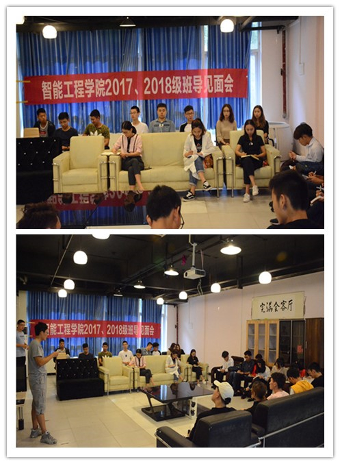会议初始,智能工程学院学生会学习部部长吴一帆同学对班导的主要职责以及日常工作进行了细致的讲解。班导的工作宗旨是为了学生、保护学生、方便学生,让大一新生更好地融入大学的新环境。除了2018级的班导,更有2017级的优秀班导何林对于往年带班所发生的问题进行了分享,他提出作为班导要具有责任感,要对同学们的学习生活给予有效的引导,需要按时和严格的查寝、查课,查寝时需要了解学生的生活,查课时需要深入课堂,观察学生表现,并提出了班会要形式多样和同学做好沟通等实用建议。对于2018级班导而言,这是非常宝贵的经验。接着,2018级班导代表李晓虎对班导工作说出了他的心声,并指出班导应该指引学生前进,帮助他们找到人生目标,顺利渡过这关键的第一年。