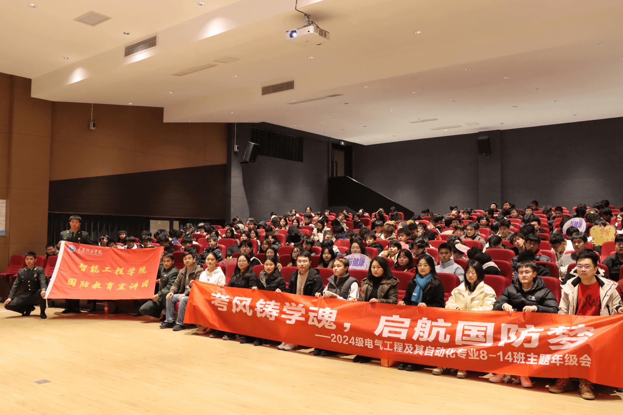 为了进一步深化全院国防教育,激发大学生参军入伍的热情,智能工程学院国防教育宣讲团于2024年12月20日和12月23日分别举办了本学年第四期和第五期国防教育入年级会活动。这两期活动分别走进了2024级电气工程及其自动化专升本13-18班年级会和2024级电气工程及其自动化8-14班年级会,取得了显著成效。