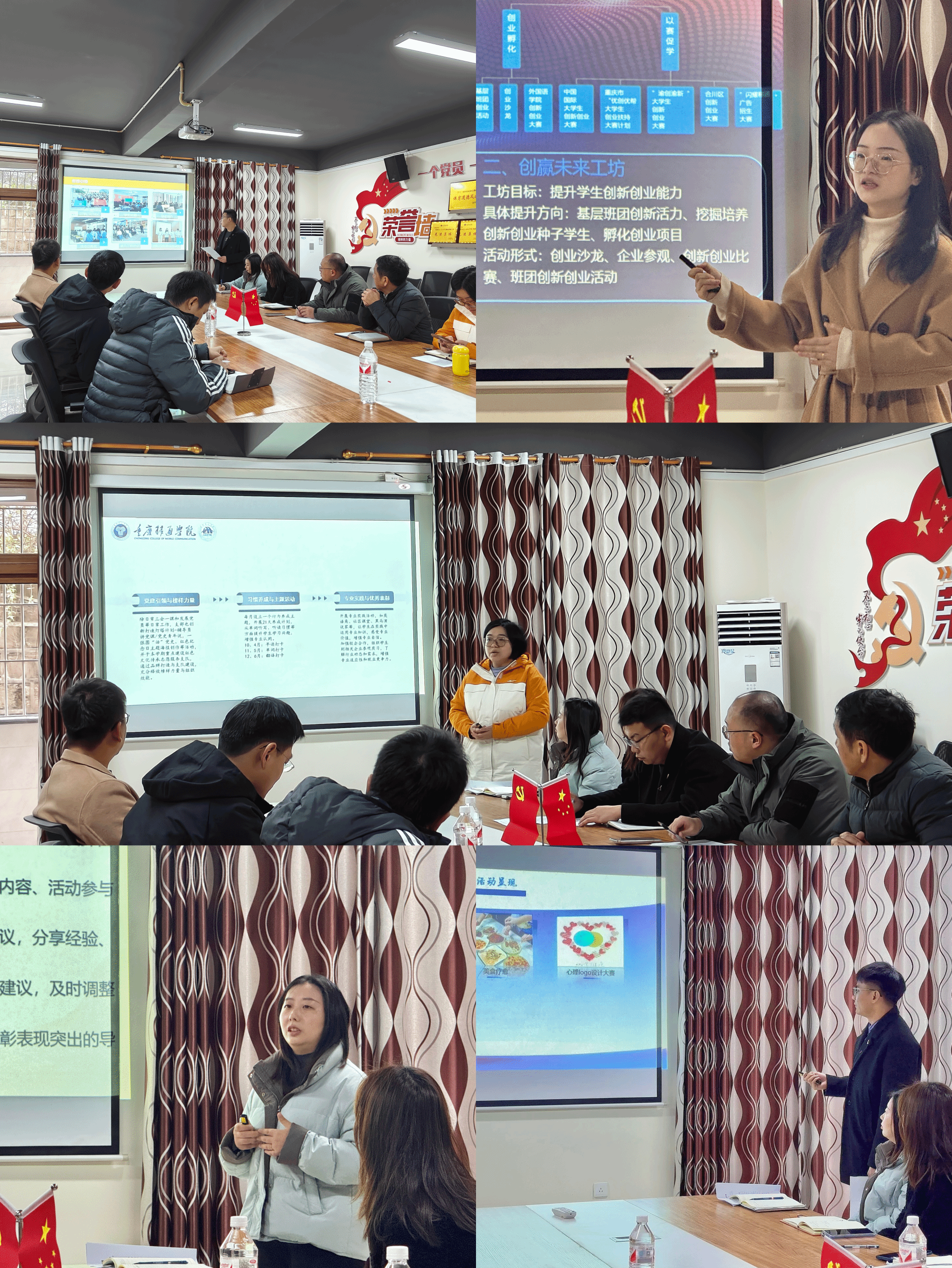 就业创业办公室主任陈锐老师从学院就创体系建设到就业服务和学院就业创业活动质量提升几个方面展开介绍,依托“职”通未来工坊和创赢未来工坊开展全面系统的就业创业指导和培训,着力提升外国语学院学生的就业质量。