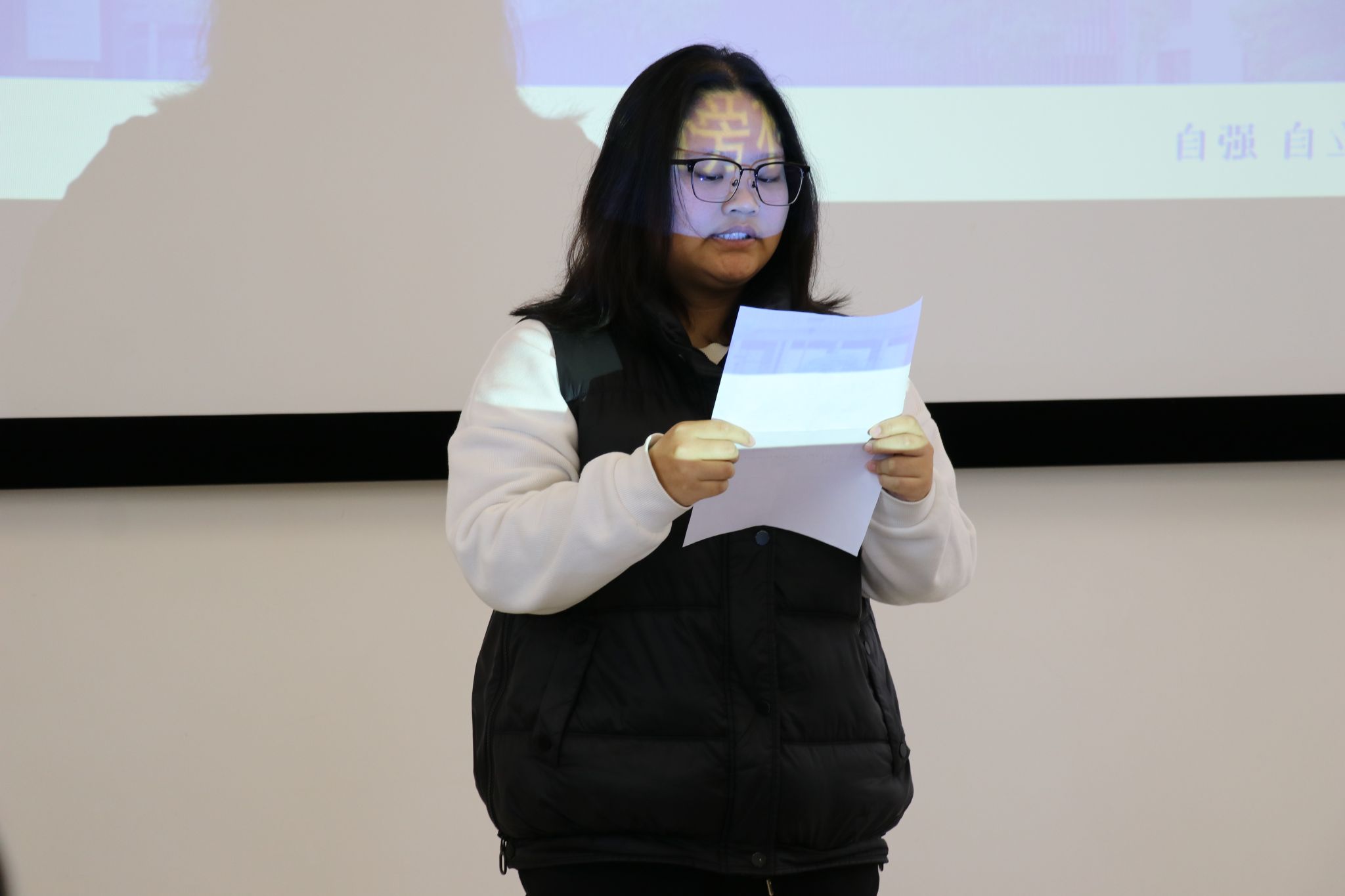 大会最后,学院国奖获得者、学生优秀代表刘家佳同学,根据自身经历给同学们提供宝贵的学习经验,激励同学们勤奋学习,积极进取,在学习中不断充实自我、挑战自我。她的发言引起了同学们的共鸣,暗暗下定决心,汲取榜样力量,努力提升自己,刘家佳的发言,点燃了在场同学的热情,为营造良好学风贡献力量。