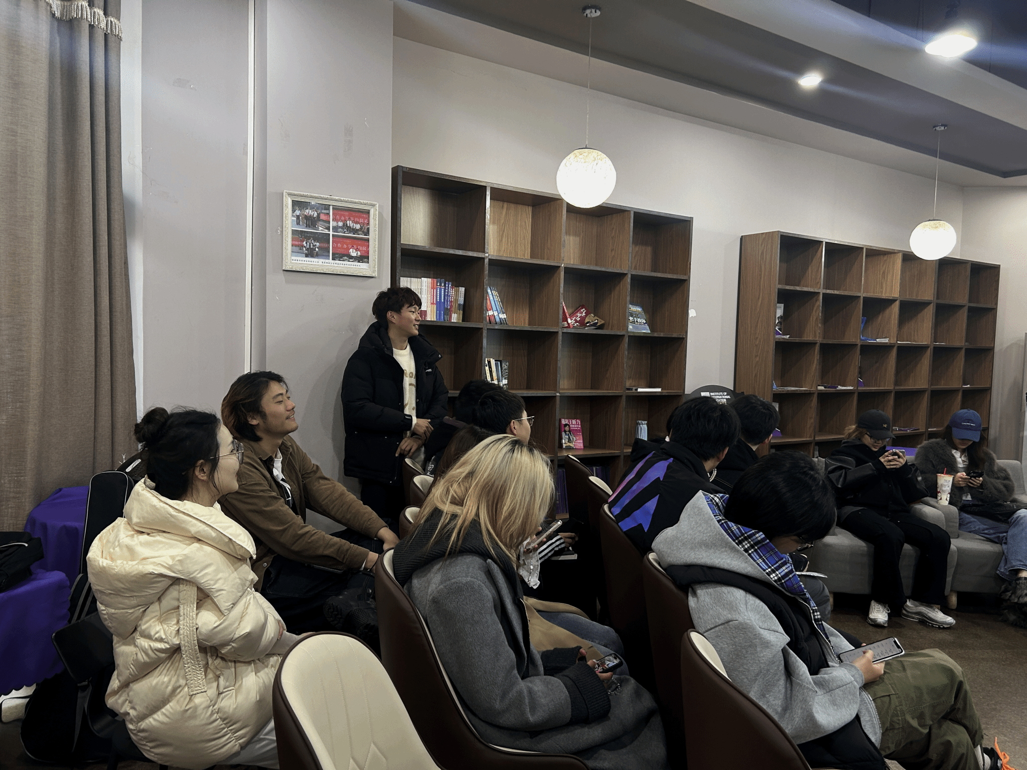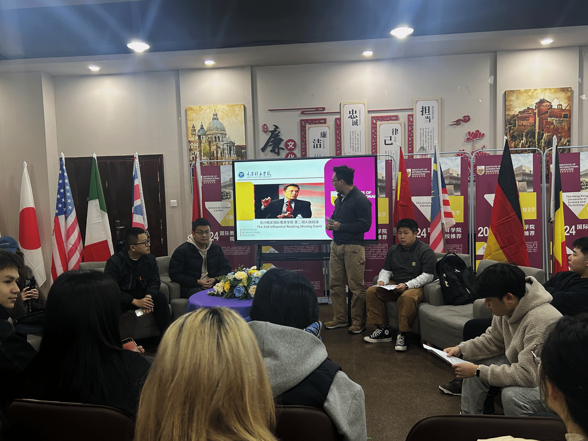 2025年3月19日,国际教育学院在行政楼C栋1楼办公室举办了第二期双语大咖阅读系列活动,本次活动以《埃隆·马斯克传》看全球科技领导力为主题,学院综合办公室主管杨德龙、合川校区雅思教学中心主任曹阳阳以及合川校区全体师生40余人参与,由2023级翻译国际1班何俊浩同学主持。