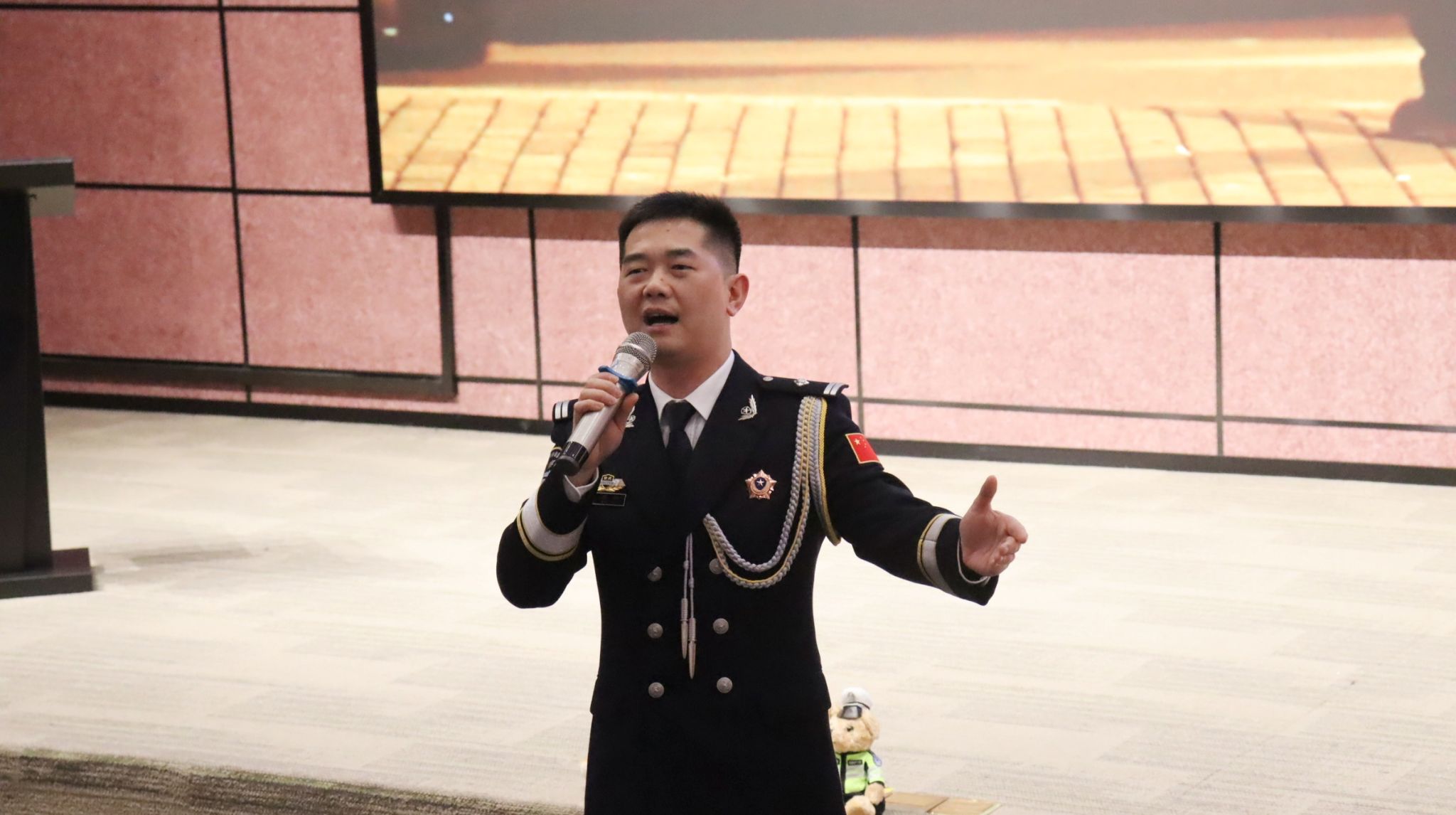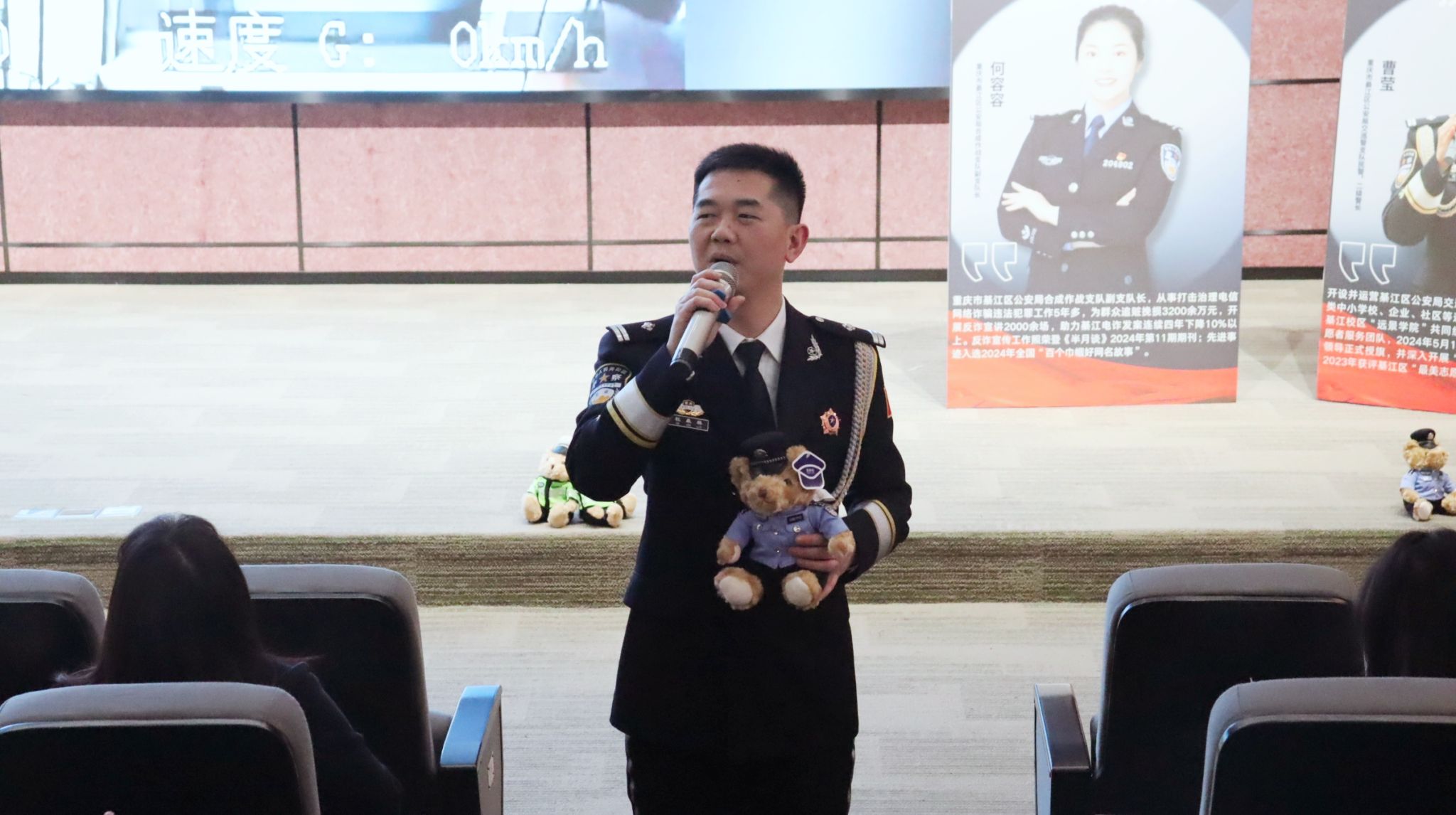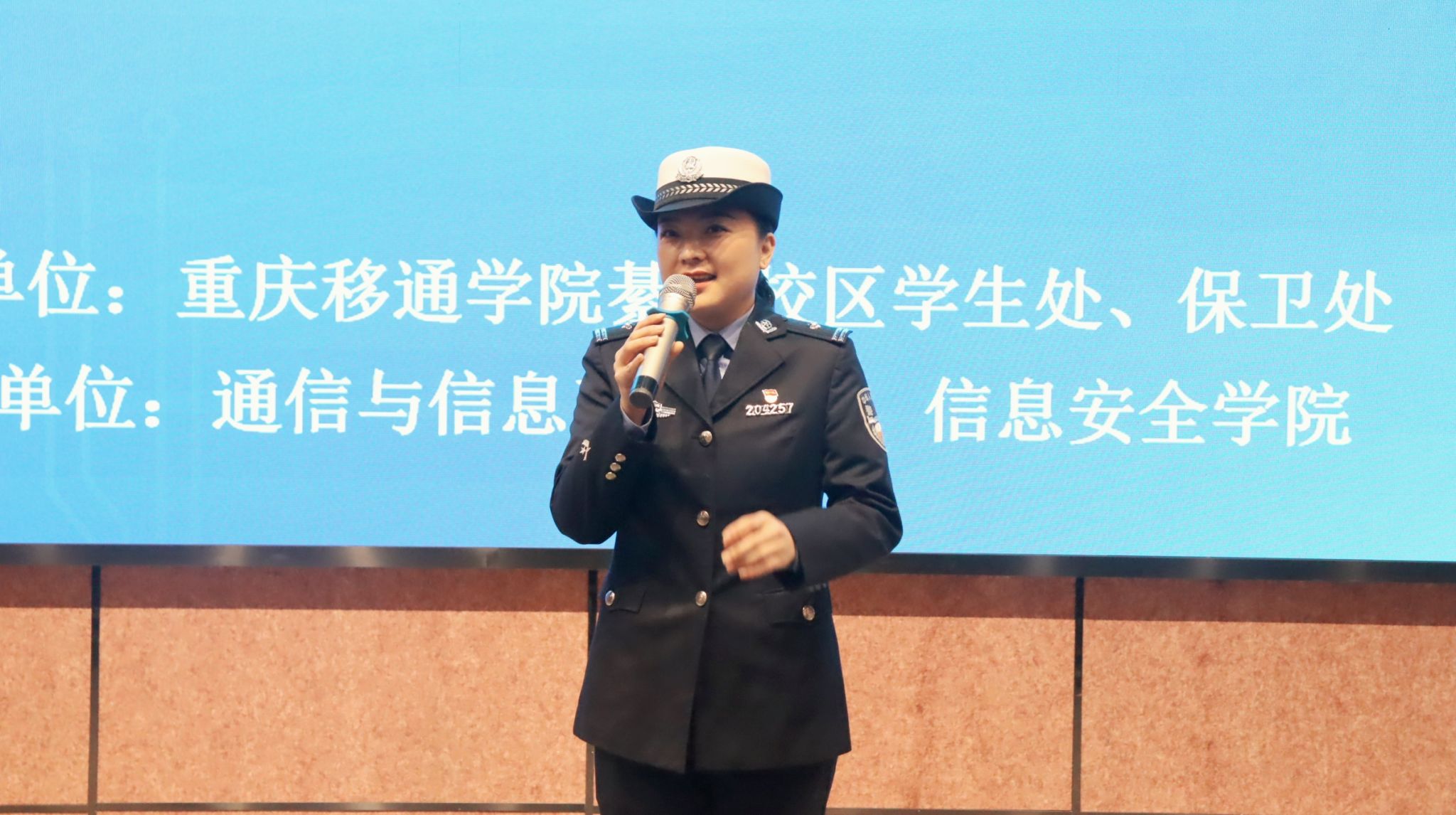 在活动现场,来自綦江区公安局交巡警支队的杜森林警官,巧妙融合充满温情的背景视频,为师生们献上了一场音乐盛宴。音符流淌间,现场气氛被悄然点燃,融融暖意弥漫在每一处角落,让这场讲座在知识传递之余,更添温馨浪漫的氛围。