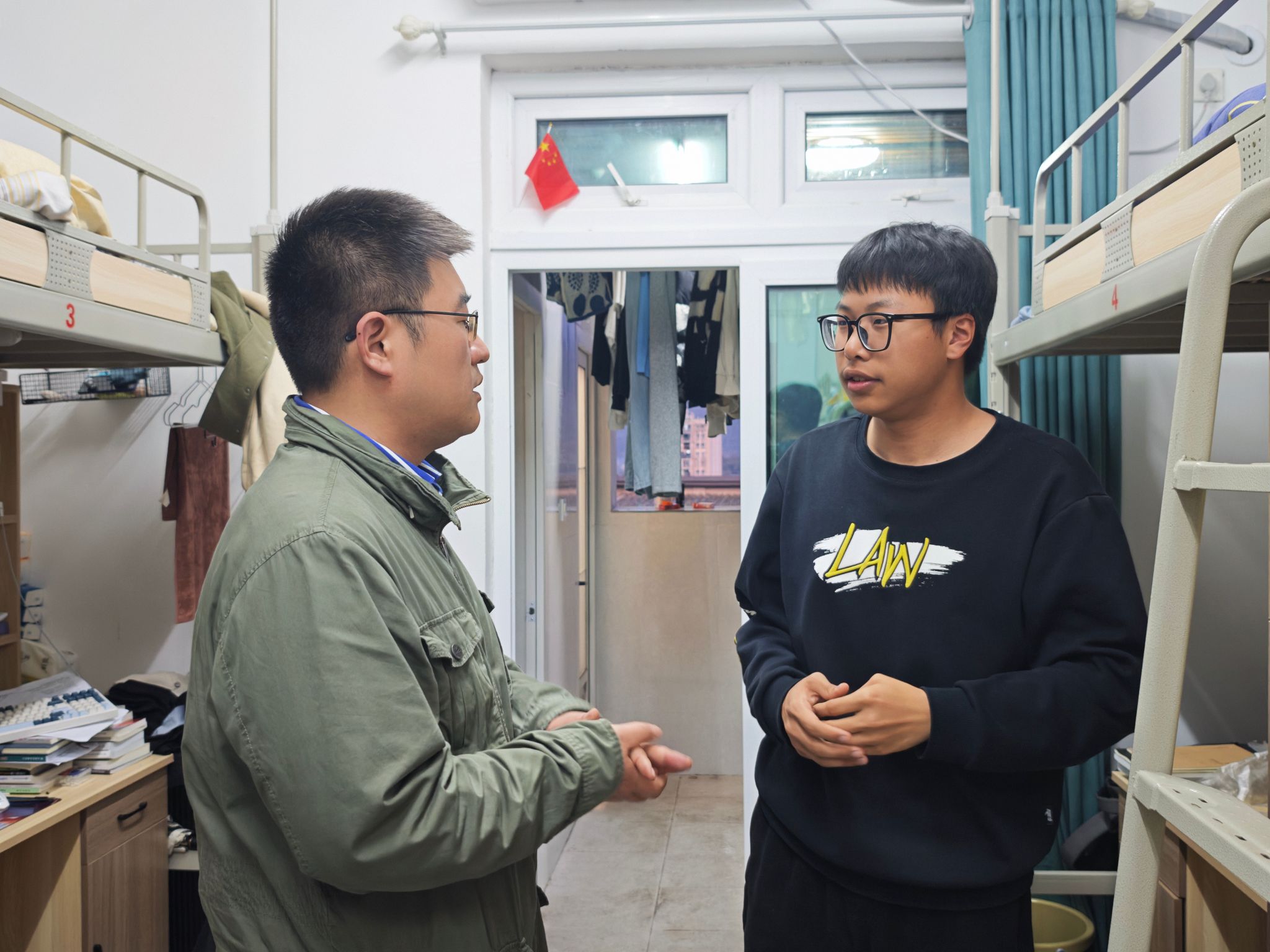 在查寝过程中,学院领导与异科导师分工明确、配合无间,各项工作开展得井然有序。他们向学生们着重强调了保持宿舍整洁卫生的重要意义,积极引导同学们养成良好的生活习惯,营造健康舒适的居住环境。在安全方面,此次查寝更是将宿舍安全问题置于首位。老师们细致排查宿舍内是否存在违规的大功率电器,认真检查消防设施是否完备、紧急疏散通道是否畅通无阻,确保在紧急情况下,同学们能够迅速、安全地撤离,为同学们的生命安全筑牢坚实防线。此外,周院长特别就交通安全、防溺水、饮食安全等方面进行了重点强调,要求同学们在日常生活中时刻保持警惕,不断增强自我保护意识。