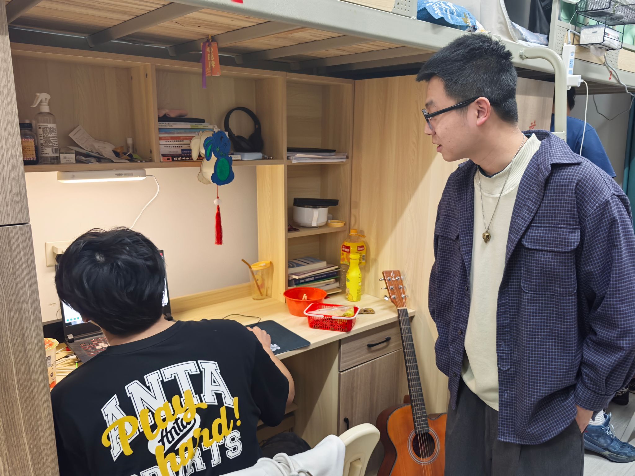 查寝期间,异科导师发挥了独特且重要的作用。在走访宿舍时,异科导师们耐心倾听学生们的生活困扰与学业难题,分享自身的成长经历与应对方法,拉近了与学生的距离。面对部分寝室物品杂乱的情况,导师们亲自动手,示范整理技巧,帮助学生建立整理规划的意识。通过讲述因违规用电引发的真实案例,让同学们深刻认识到安全隐患,引导大家自觉遵守宿舍管理规定,以细致入微的关怀,助力学生全方位成长 。