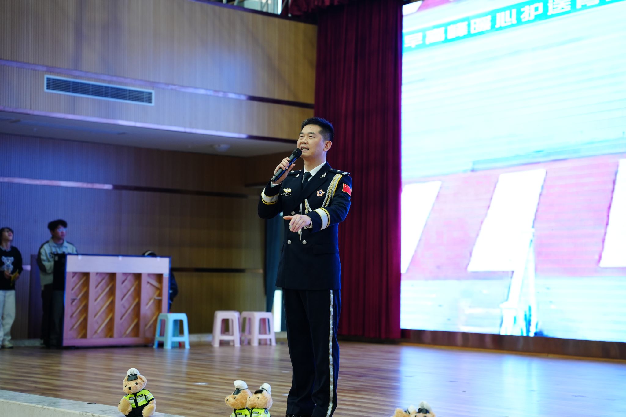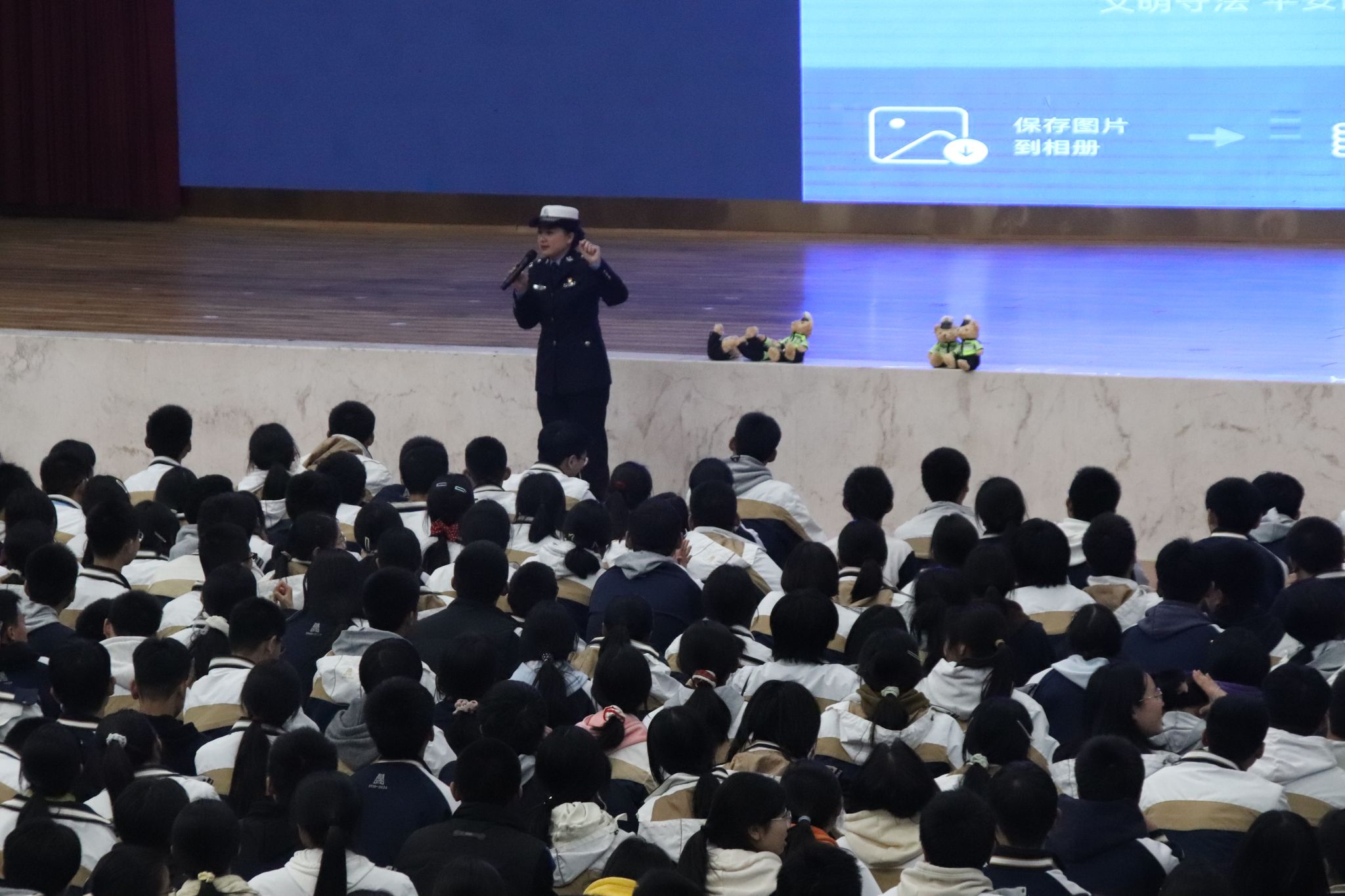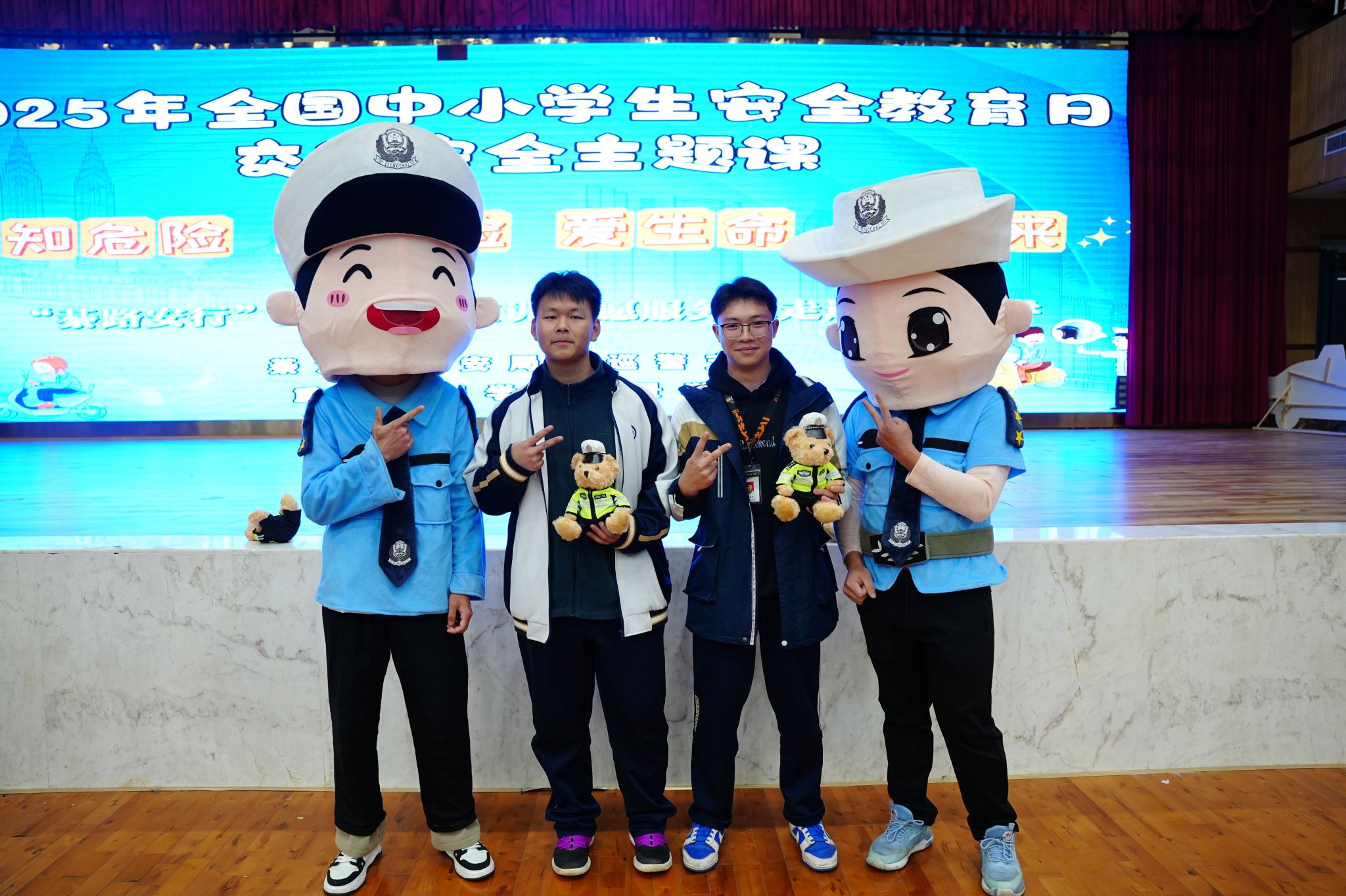 现场互动环节更是将气氛推向高潮,同学们积极踊跃,纷纷举手抢答问题,展现出了大家对交通安全知识的强烈求知欲。那些表现出色、积极抢答问题的同学,不仅收获了可爱的交警小熊,更是将交通安全知识牢记于心。