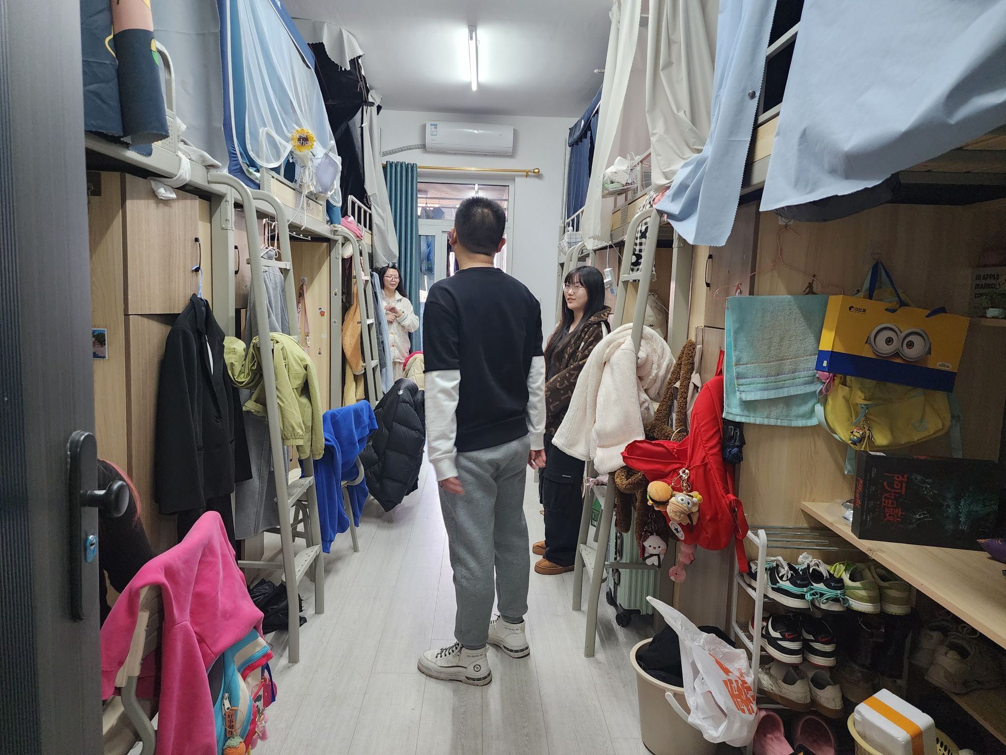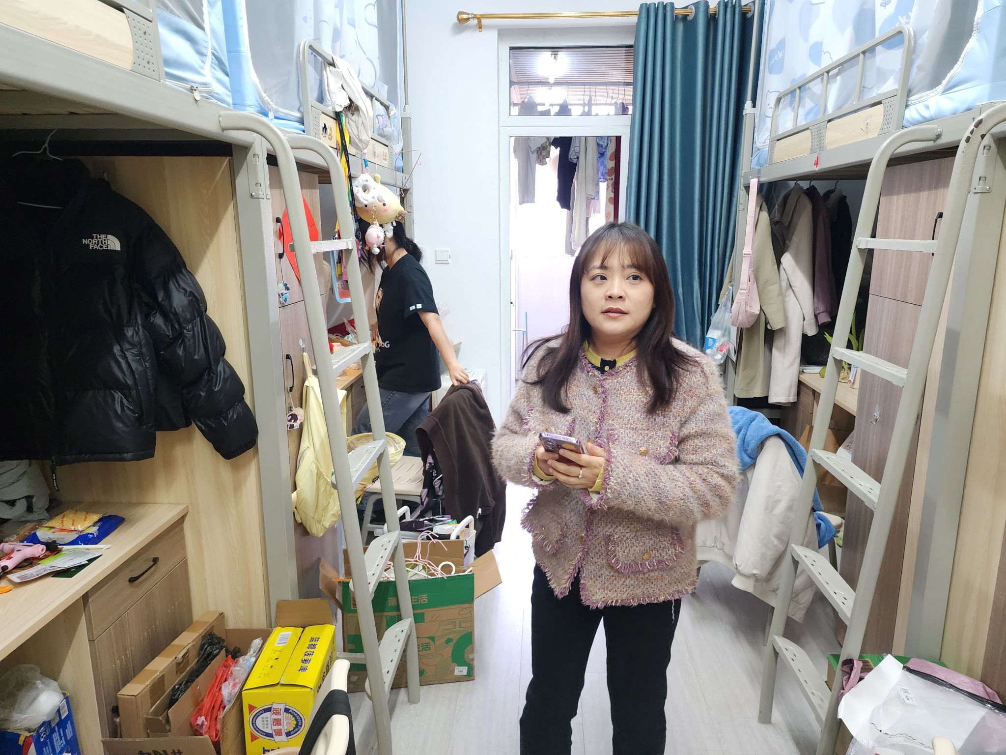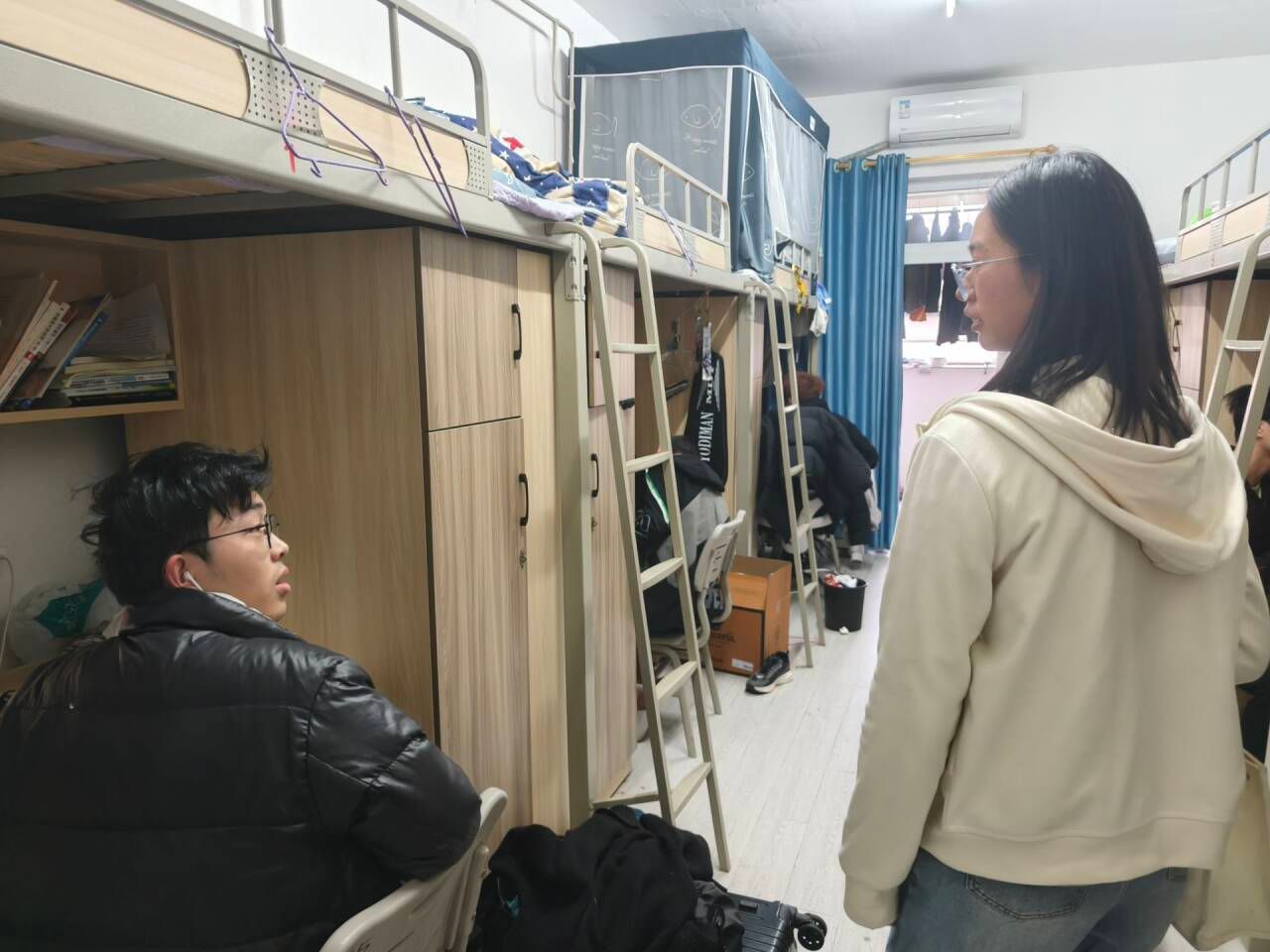 查寝过程中,辅导员们不放过任何一处角落,认真履行查寝职责。田海燕老师时刻把同学们的健康放在心上,仔细检查宿舍卫生状况。她亲切地提醒大家:“春季疾病高发,干净整洁的环境是预防疾病的基础。大家要记得多通风,守护好自己的健康。”言语间,满是对学生的关切。