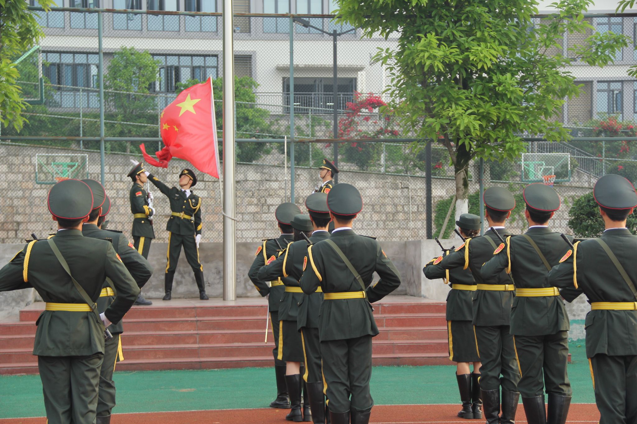 碎金般的晨光洒落在五星红旗上。随着一声清脆的口令,校国旗护卫队身着统一制服,迈着整齐划一、铿锵有力的步伐,护送五星红旗向升旗台稳步前行。队员们身姿挺拔,目光坚毅,每一步踏地都掷地有声,尽显青春朝气与使命担当。当国歌声响彻,鲜艳的五星红旗迎着朝阳冉冉升起,全体师生神情肃穆,庄严肃立,以标准的注目礼和嘹亮的国歌声向国旗致敬。这一刻,炽热的爱国情怀与昂扬的劳动精神在晨光中交融激荡,化作澎湃力量,在每个人心中升腾。