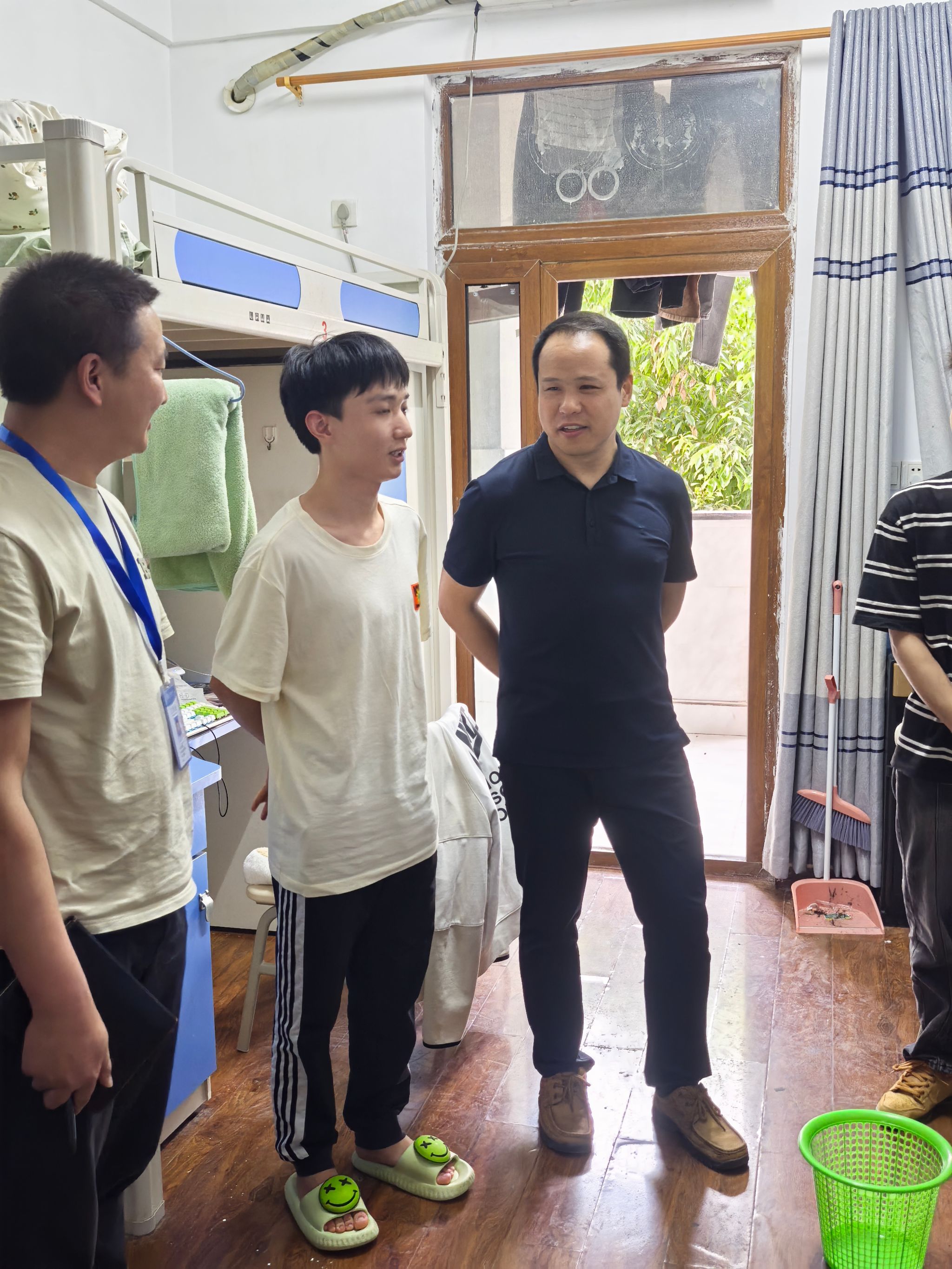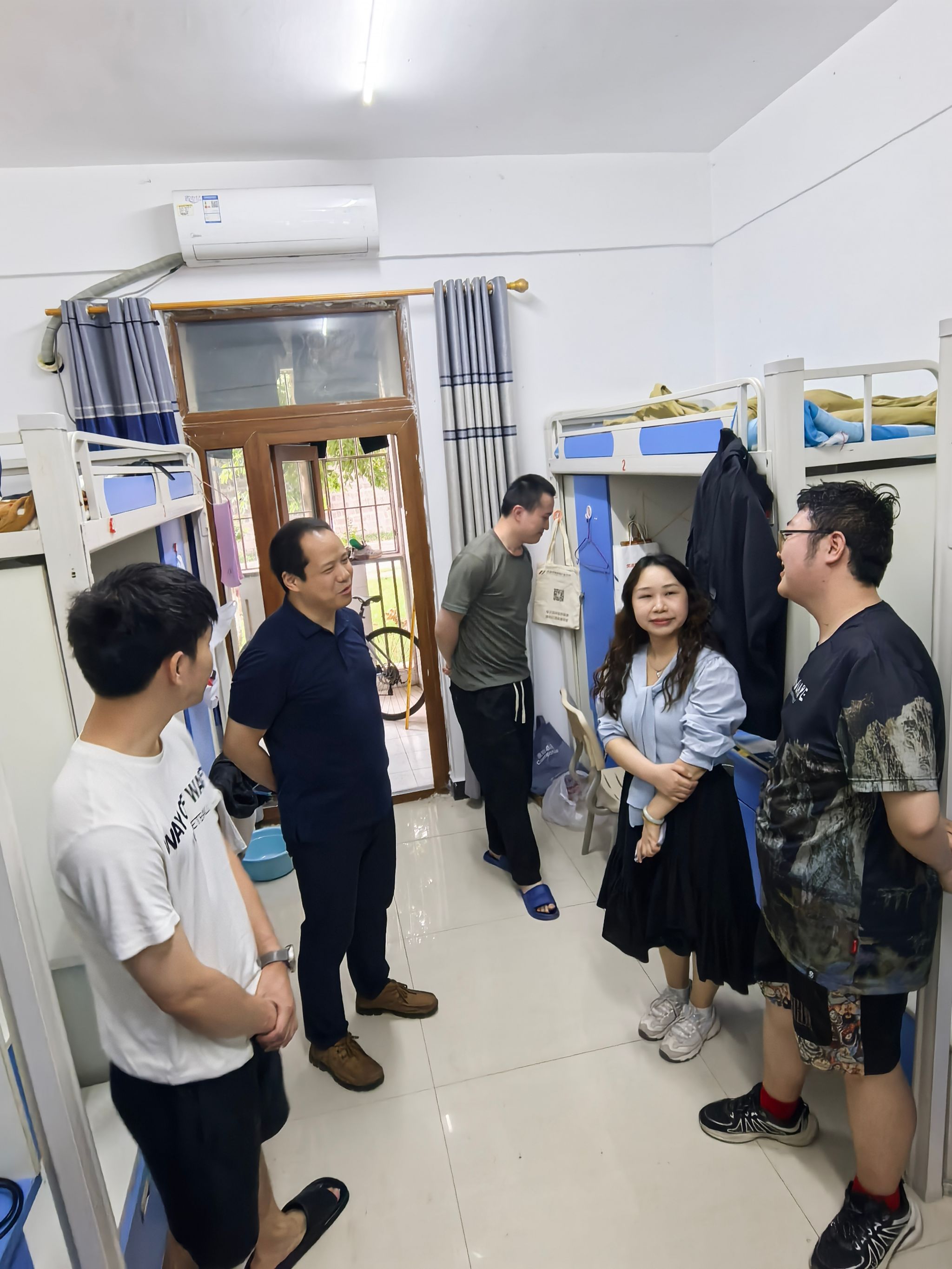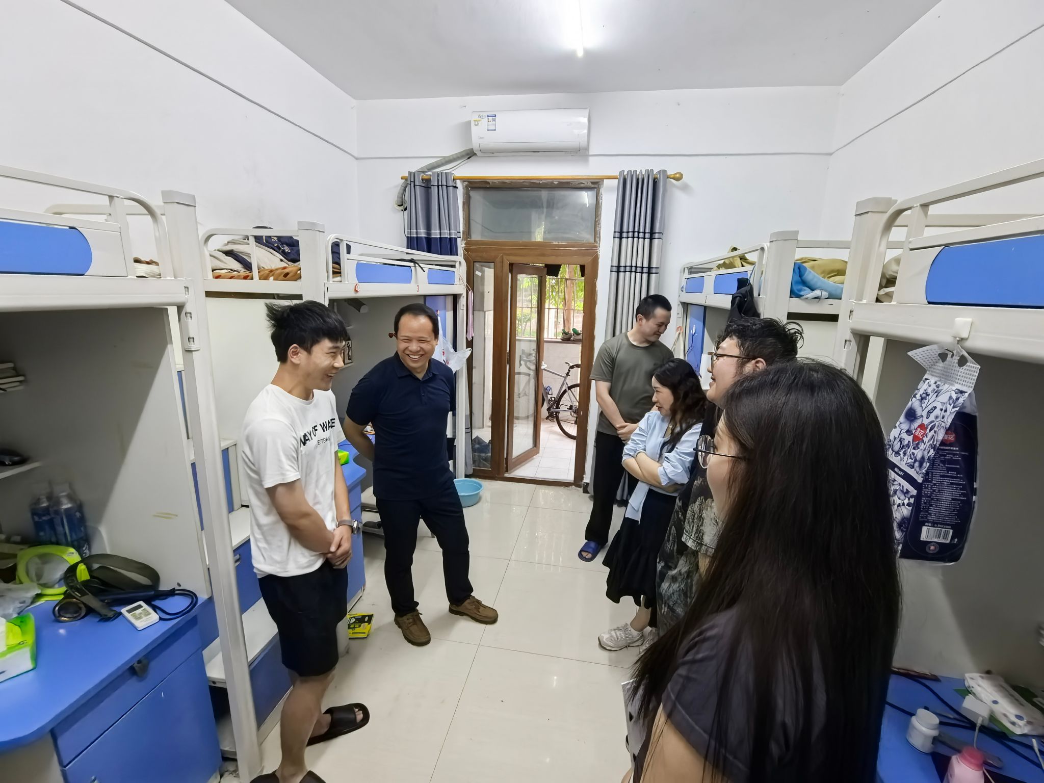 2025年4月28日18:00,为加强宿舍管理,营造安全、整洁、和谐的住宿环境,在祝玮副院长的带领下,全体辅导员深入学生寝室,围绕寝室卫生、用电安全、未来规划等多个维度开展联合查寝工作,并对即将到来的五一假期出行安全向同学们作出温馨提醒。