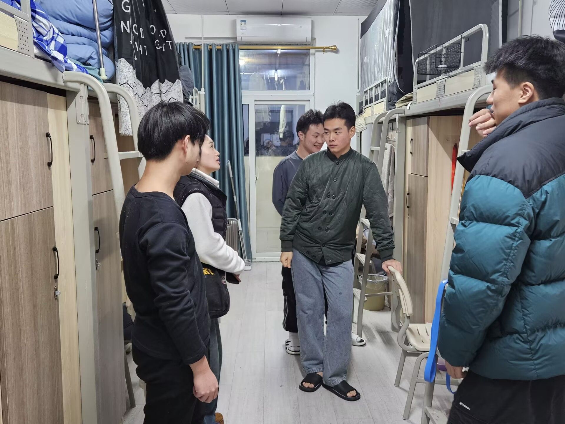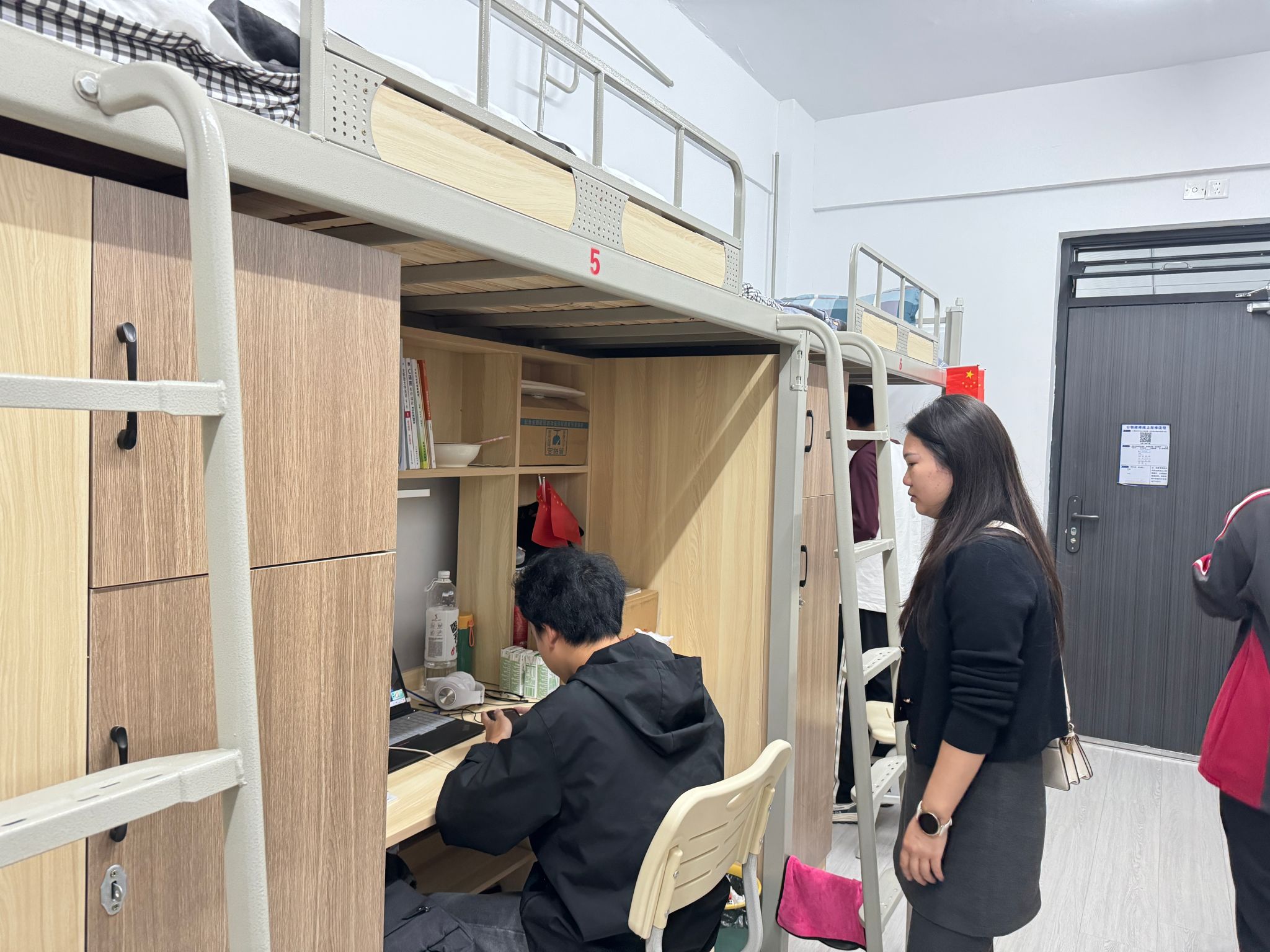 五一假期前夕,老师们带着深切关怀,逐一走访各个寝室。他们以温柔亲切的语气,与同学们拉家常般询问生活状况,仔细倾听每一个需求与困难。从关心食堂饭菜是否可口,到叮嘱天气多变注意添衣,事无巨细。面对计划出行的同学,反复提醒选择正规交通工具、做好安全规划;对于留校学生,耐心讲解校园安保措施与注意事项。同时,还不忘提醒大家预防流感,外出佩戴口罩,勤洗手,句句叮嘱都饱含着对学生的关爱与牵挂。
