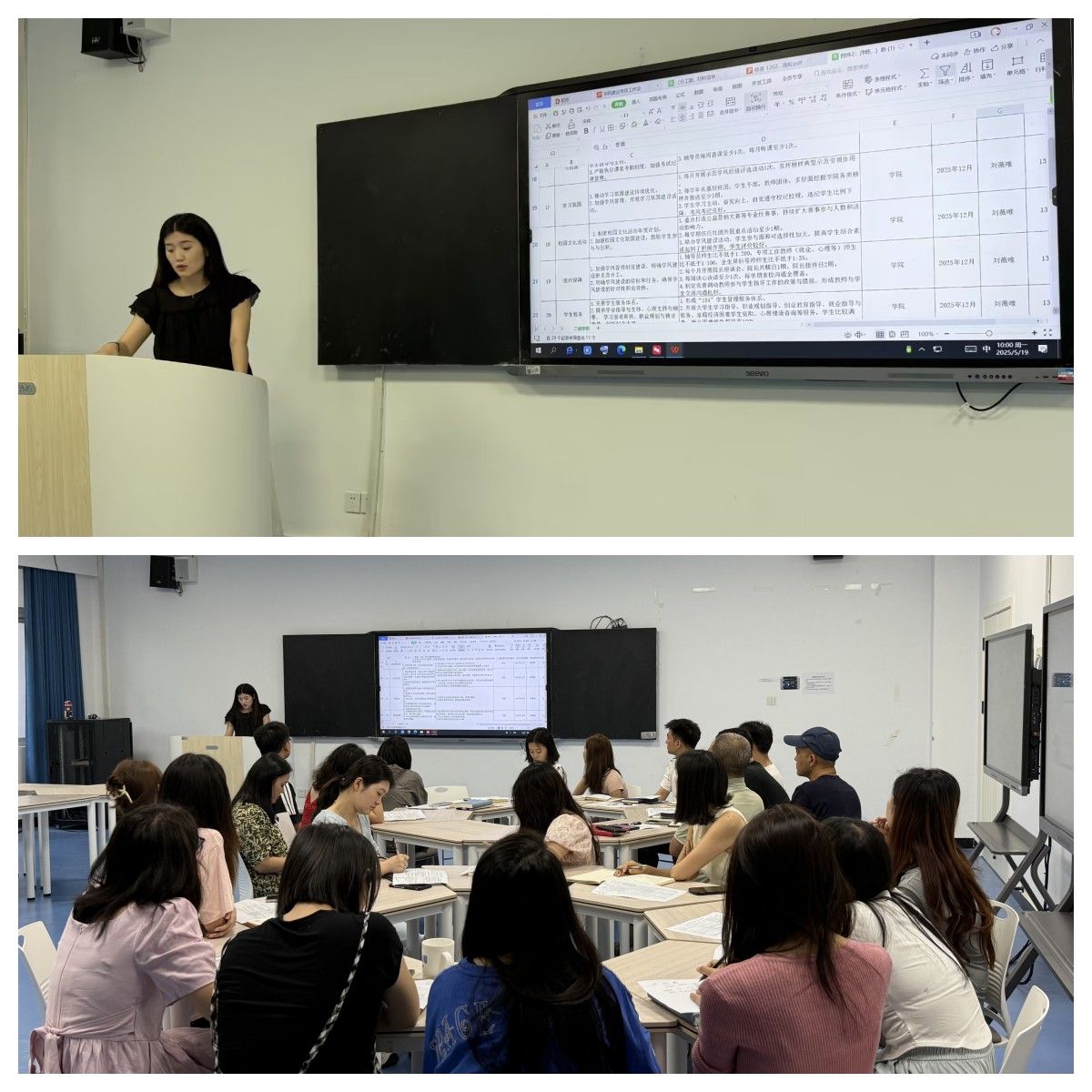 学工办主任廖进在会议中指出,学风建设是学院高质量发展的基石,尤其在迎接本科教学合格评估的关键阶段,需以“思想铸魂、文化浸润、实践淬炼、学风建设”四大板块为核心抓手,将学生工作落到实地。廖进老师重点解读了评估中涉及学风建设的归档材料要求,强调材料需体现系统性、规范性与创新性,并明确责任分工,要求各年级辅导员细化执行方案,确保“事事有人管、件件有落实”。此外,她还结合了实际发生的案例强调学风建设需贯穿学术诚信、行为规范、实践能力等全维度,为淬炼的学生工作培养筑牢根基。