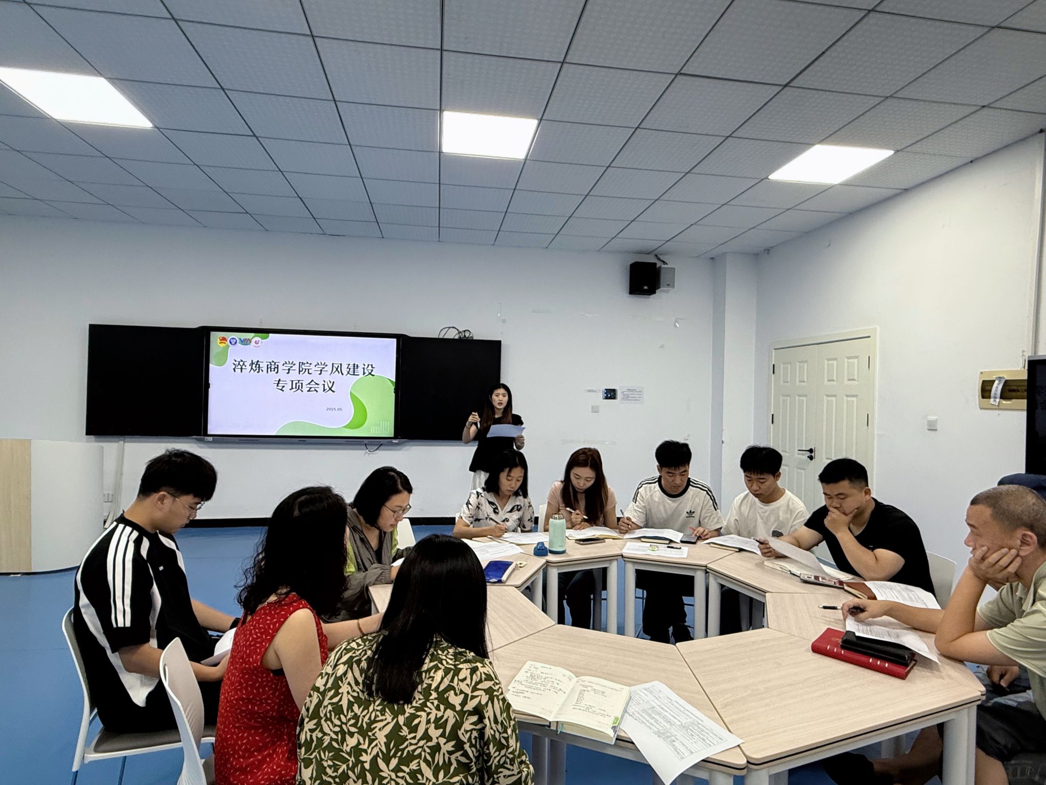为扎实推进淬炼商学院学风建设,全面促进学生成长成才,营造良好学习氛围,通过多维度、多层次的教育实践活动,着力构建"乐学、勤学、善学、笃学"的学风建设体系。淬炼商学院组织全体辅导员于2025年5月19日在5205开展学风建设专项会议,本次由学工办主任廖进主持。
