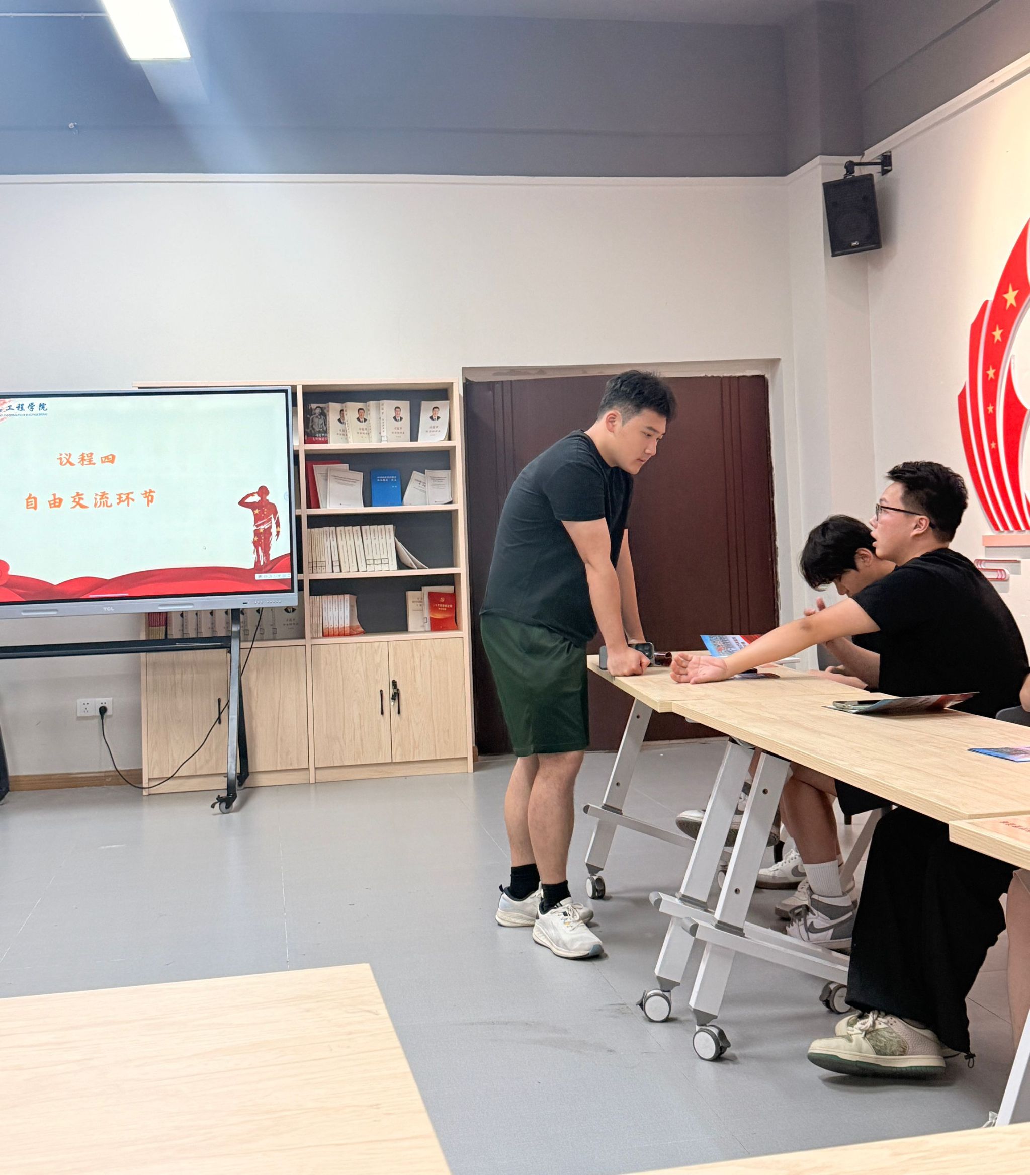为深入贯彻落实征兵工作有关精神,激发信息学子的爱国情怀和参军热情,帮助学生更好地了解参军入伍政策,5月21日下午 2:30,通信与信息工程学院于南湖书院党团活动室举行2025年征兵宣讲会。本次宣讲会邀请到校征兵办负责人江旭东、校征兵宣讲团及退伍士兵,通过多维度、深层次的内容输出,为学子们打开通往军旅生涯的认知大门,助力国防后备力量建设。通信与信息工程学院20余名有入伍意向的学生代表参与,会议由通信与信息工程学院辅导员黄文艺主持。