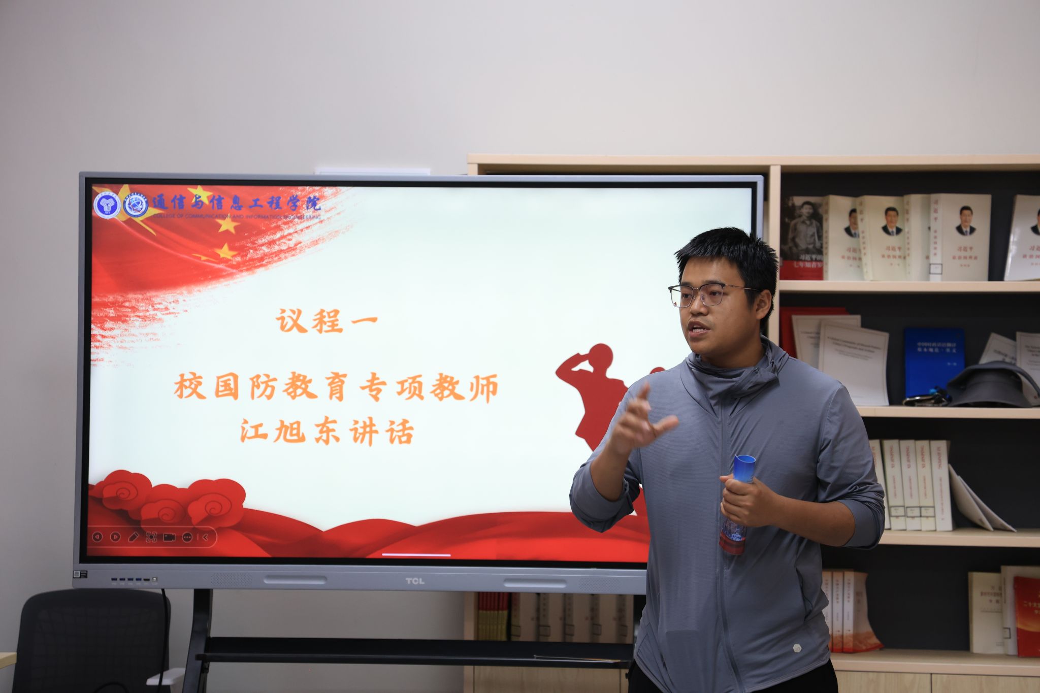 退伍士兵的分享环节,是对军营精神的生动诠释。通信与信息工程学院退伍学生李长江以自身经历为脉络,将看似平凡的军旅日常升华为精神传承的载体。从高强度的体能训练中锤炼出的钢铁意志,到团队协作任务里凝结的战友情谊,每一个故事都折射出军队文化对个人成长的重塑力量。他讲述在极端环境下坚守岗位的担当,以及面对挑战时迎难而上的勇气,这些经历让同学们认识到,军营不仅是技能的训练场,更是品格的锻造炉、信仰的加油站。退伍士兵用自身蜕变的轨迹,将红色基因与军队精神具象化,激发着同学们对军人使命的向往与追求,为国防教育注入了情感共鸣的温度。