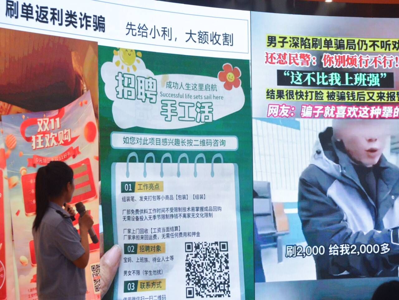 余警官总结了诈骗的四个套路:刷单返利类诈骗;虚假购物、服务类诈骗;同城约炮、裸聊类诈骗以及网络游戏产品虚假交易类诈骗。