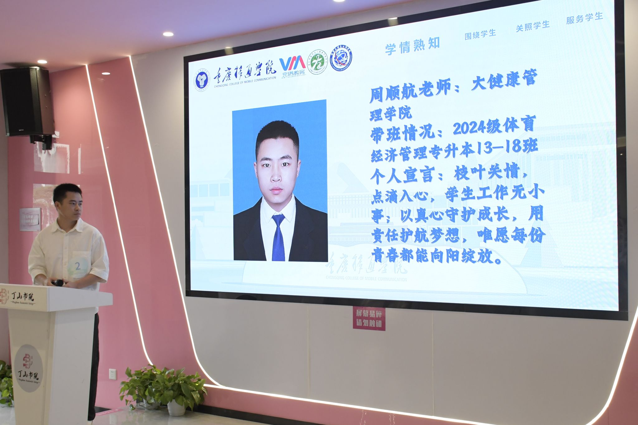 比赛设置三大环节,全面考察辅导员综合能力。在“我的学生我知道”环节,7位参赛辅导员需根据学生照片准确说出人名、籍贯、困难等级等五项基本信息,充分展现对学生信息的精准掌握。“我的学校我‘拿捏’”环节则通过校园场景图片测试,考察辅导员对教育教学空间的熟悉程度,选手需在20秒内识别场景所属区域并回答相关问题。
