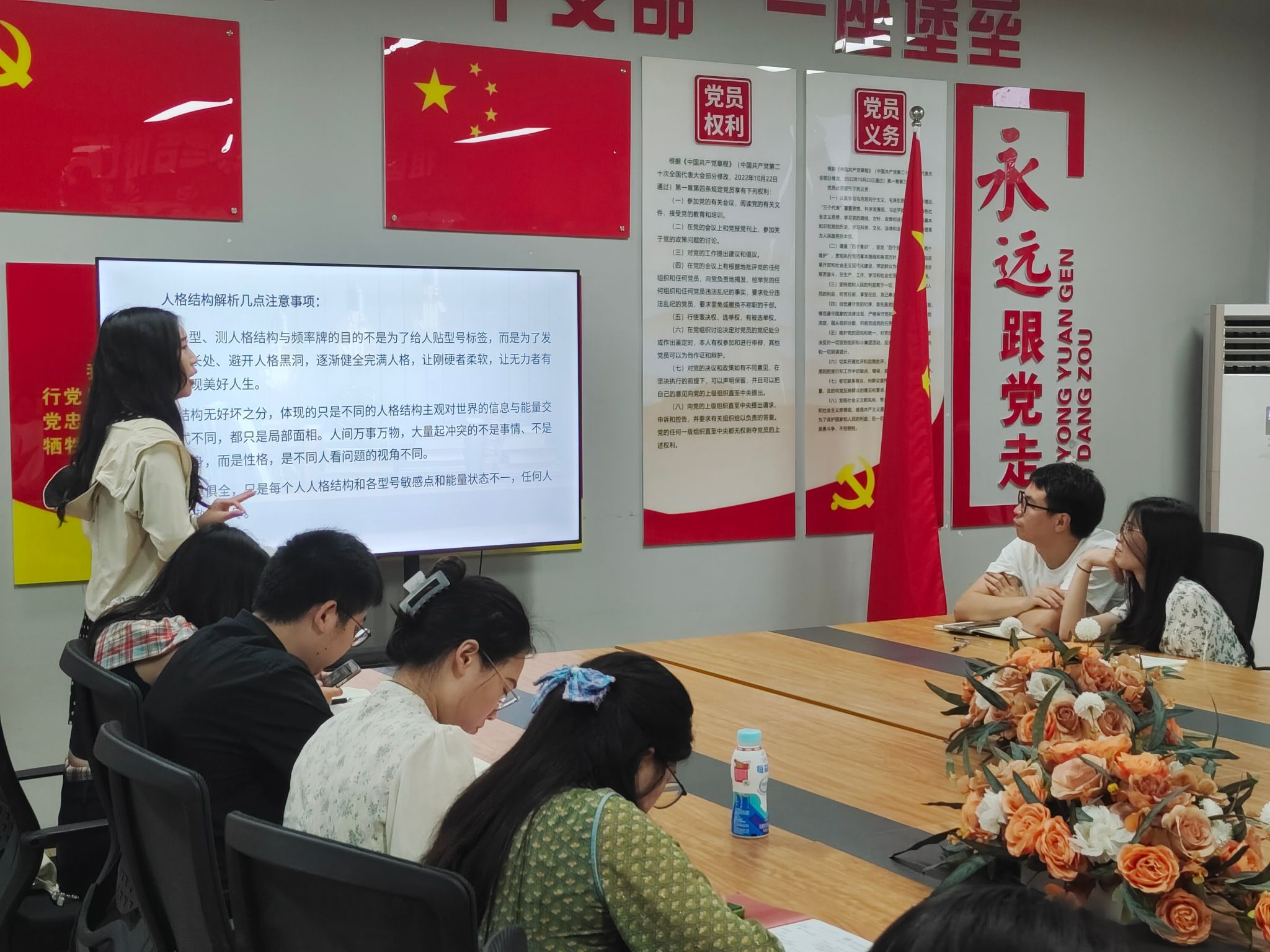 最后,辅导员曾珂老师就前期去晋中信息学院培训学习《九型人格解析实操转训》的内容进行了转训。在辅导员的岗位上,她深切体会到教育不仅是知识的传递,更是心灵的对话与人格的塑造,“以格塑格”就是曾珂老师对九型人格理论在育人实践中应用的深刻理解。她提到,辅导员可以通过九型人格的解析与引导,帮助学生认识自我、接纳自我,进而塑造更加完满的人格。在学生管理工作中,我们要鼓励学生勇于探索自我,发现自身潜能,同时也学会理解和尊重他人的人格差异,共同构建和谐的人际关系。