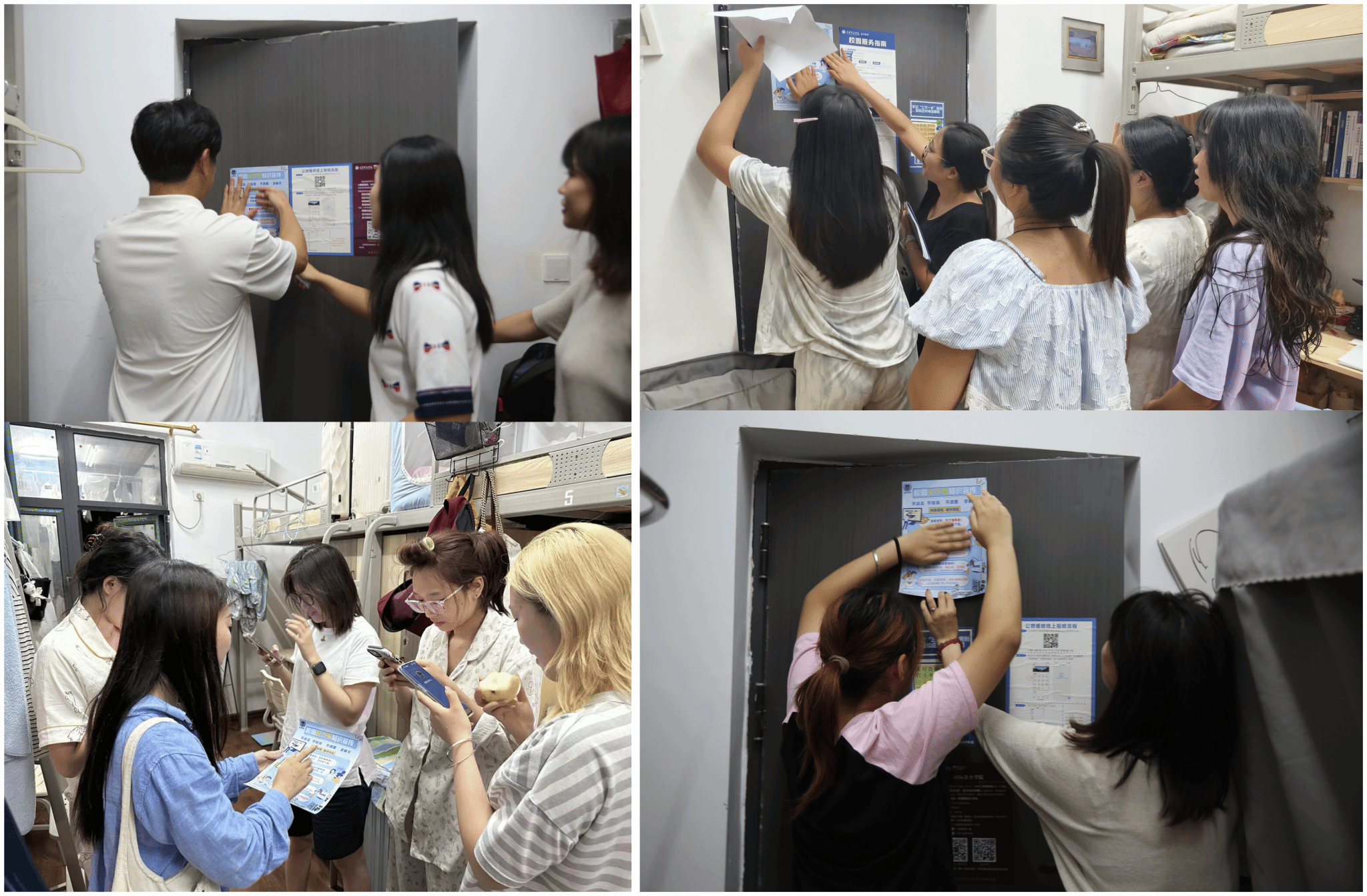 本次专项行动还特别加强了反诈宣传教育,各年级辅导员结合近期高校电信网络骗案例,向学生们进行了详细的安全警示和防范措施讲解,特别提醒要警惕陌生来电、虚假网络信息和非法借贷平台。学院还专门制作了“反诈小贴士”宣传单,内容涵盖常见诈骗手法识别、应对措施、求助渠道及相关联系方式等实用信息,由师生一起粘贴于各宿舍门后,方便学生随时查阅学习,切实增强防骗能力。