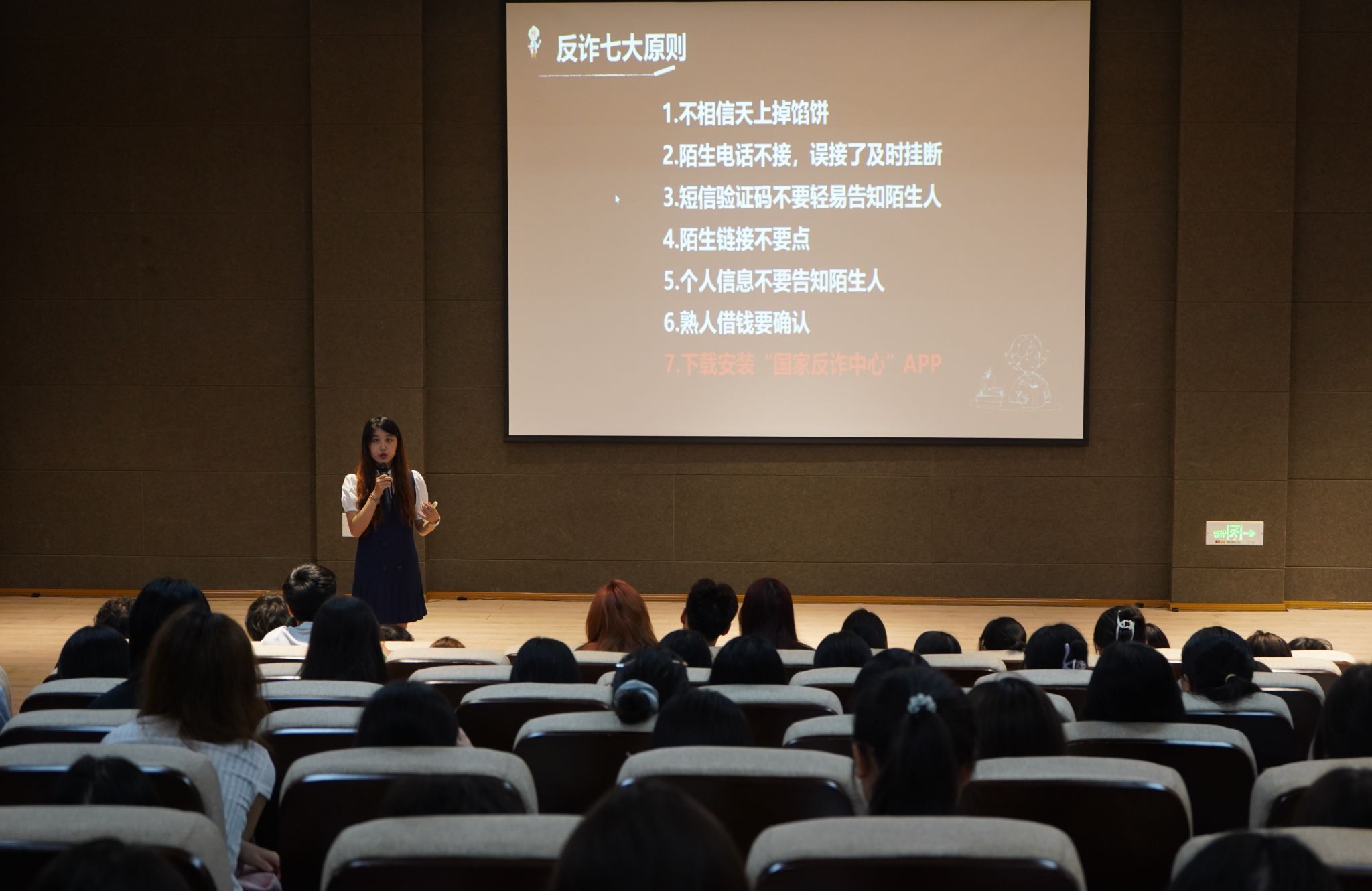 在学生管理方面,辅导员孟易老师详细解读了学分构成、挂科红线等毕业硬指标,强调了学业规划与自我管理的重要性,全面宣传了奖勤助贷各类政策。辅导员杨子莹老师在现场演示国家反诈中心App使用方法,公布校警电话等4个应急联络渠道,特别提醒“所有刷单都是诈骗”的防骗要点,切实增强新生安全防范意识。辅导员张颖超老师介绍了班委的工作意识和职责范围,明确班委是师生沟通的有效桥梁。