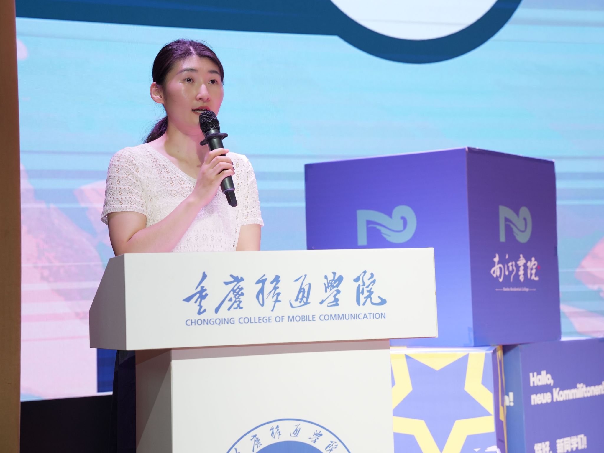 优秀学生代表李沁珂同学结合自身完满之路在德国远程视频分享“我在移通,种了一棵种子”,讲述了如何在大学校园中突破自我、实现蜕变。她鼓励新生勇敢尝试、积极参与完满教育活动,在这个充满机遇的平台锻炼自我、收获成长。同时,新生辅导员王媛媛老师为同学们送上“成长锦囊”,并由衷地祝贺和热烈地欢迎新生的到来。