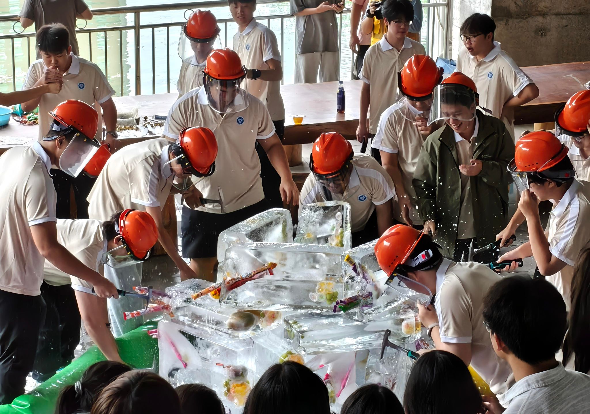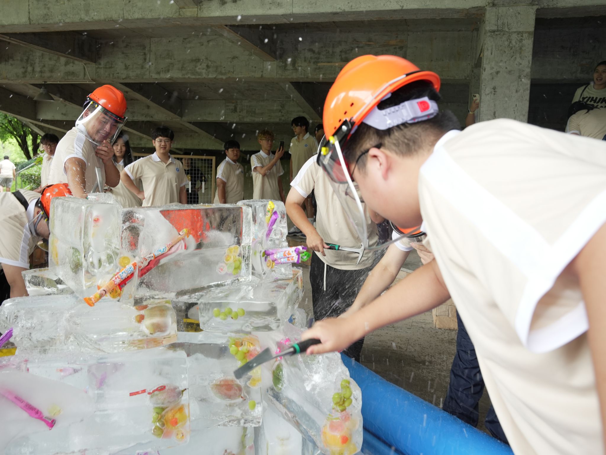 随后,“破冰行动”环节将气氛推向高潮,破冰行动区的巨大冰墙成为焦点——当新生亲手凿下冰块的瞬间,击碎了传统的刻板偏见,打破了“我不行”的心理负面标签,以具象行动告别旧我。
