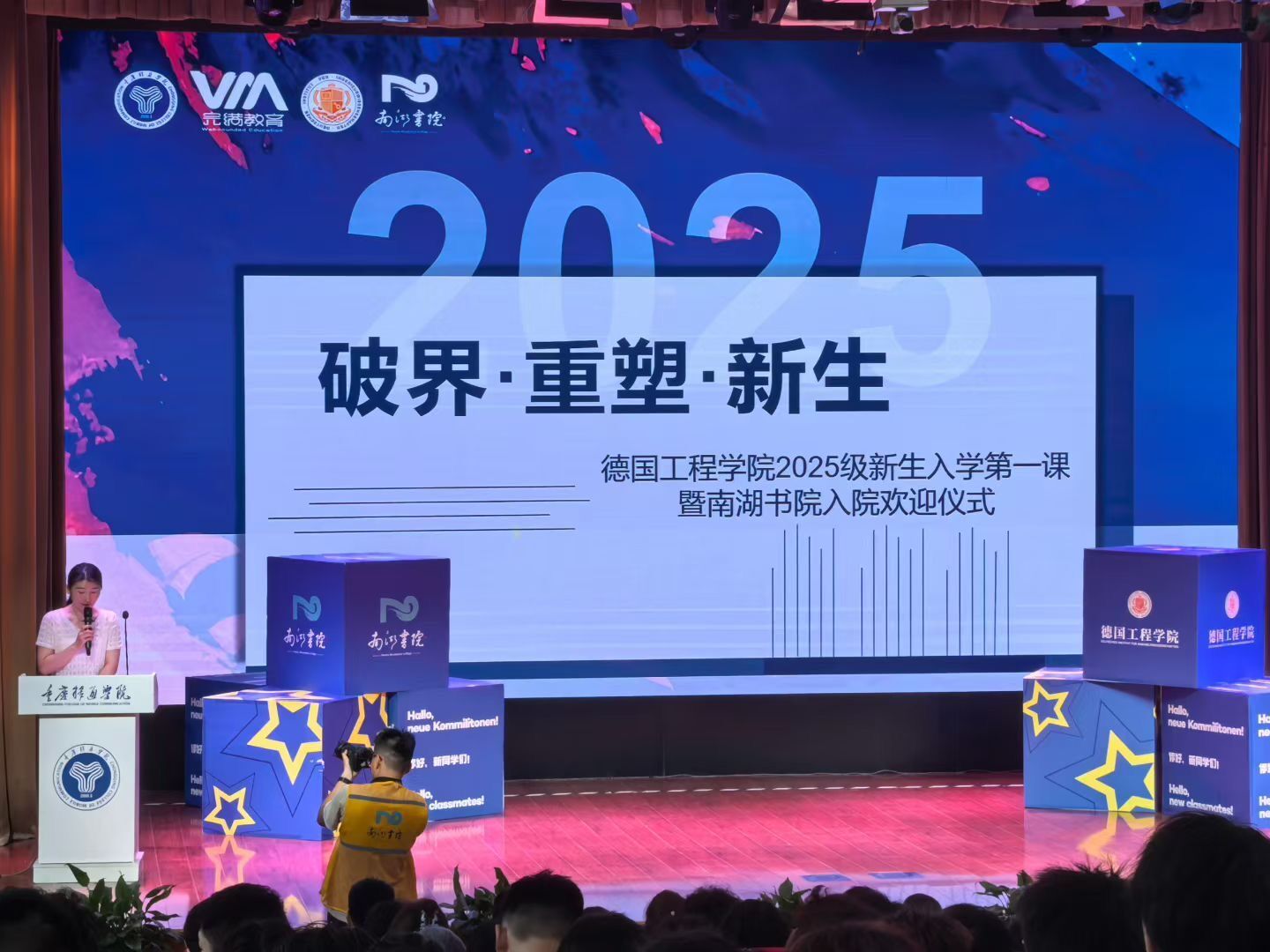 9月是新生进入大学,开启新阶段的起点,高中阶段的成长环境往往伴随单一评价体系与固化认知标签,这些隐性枷锁易让新生带着预设焦虑进入大学,德国工程学院联合南湖书院于9月12日下午三点在下里巴人剧场特此举办了“破届·重塑·新生——德国工程学院2025级新生入学第一课暨南湖书院入院仪式”。