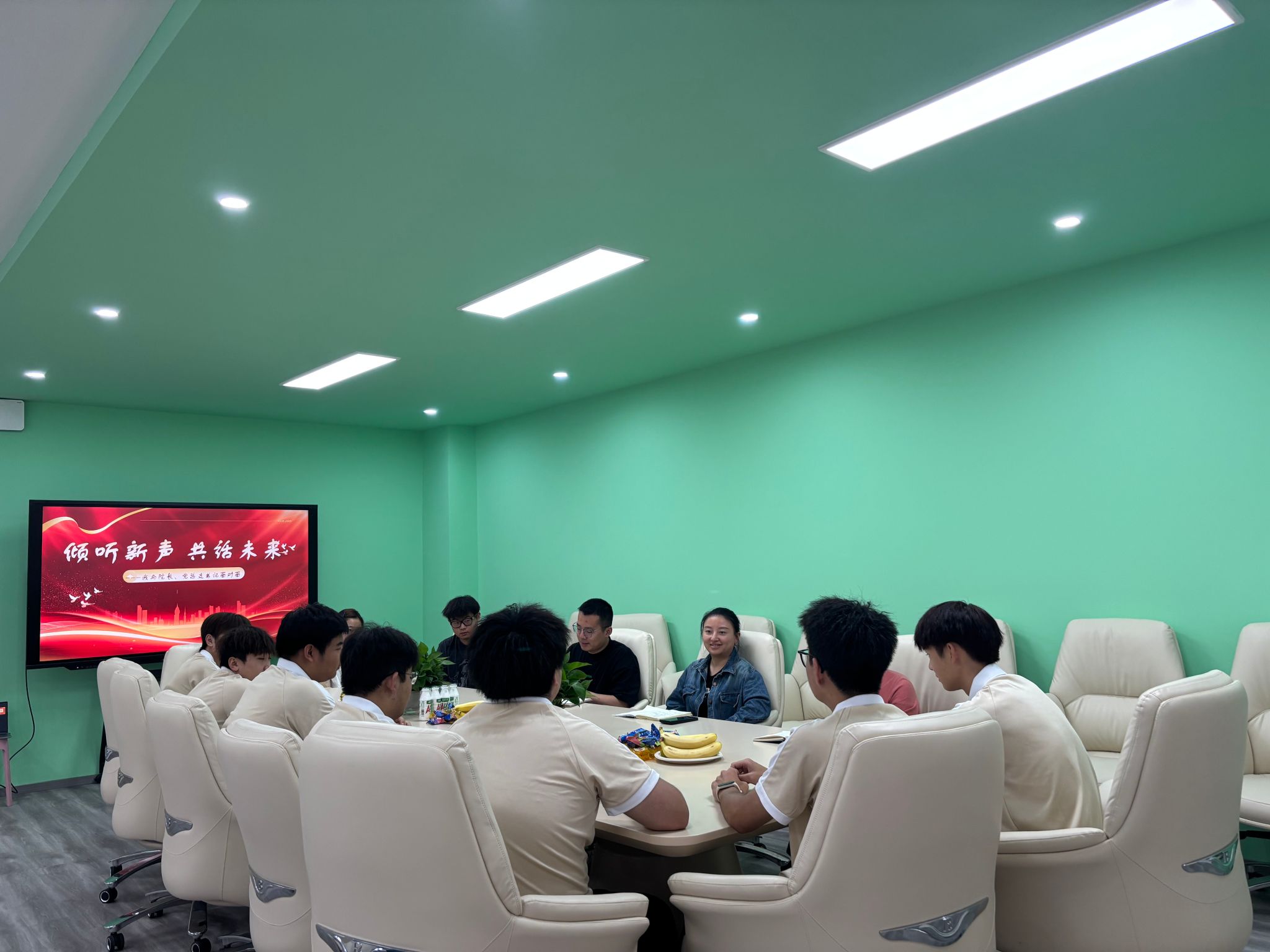 在交流环节中,新生们积极发言,分享了自己对校园的第一印象。有的同学表示,学校的环境优美,教学设施齐全,给人一种庄重而温馨的感觉;有的同学则对学校的图书馆、实验室等资源表示出了浓厚的兴趣,期待能够在大学期间充分利用这些资源,提升自己的专业水平。同时,同学们也提出了自己在校园生活中遇到的一些问题和困惑,例如洗漱的地方没装热水、女生表示住六楼提桶装水上去很艰难,能否装个电梯等等。对此,党总支书记表示,学校会认真对待同学们的反馈,积极协调相关部门,尽快解决这些问题,为大家创造更好生活环境。