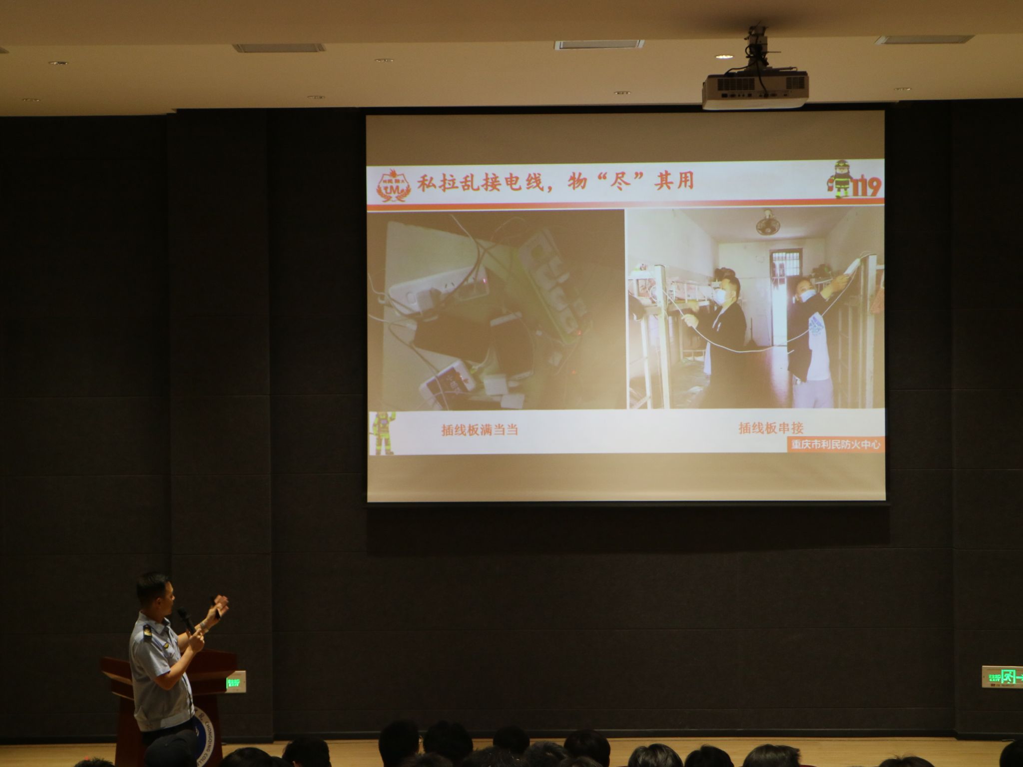 此外,黄教官还展示了学校常见火灾隐患场所的相关画面,如实验室、宿舍、食堂等。画面中,乱堆乱放的易燃物品、老化破损的电线、违规使用的电器等隐患一一呈现,让师生们触目惊心。教官提醒大家,安全隐患无处不在,要时刻留意身边潜在的安全风险,做到防患于未然。