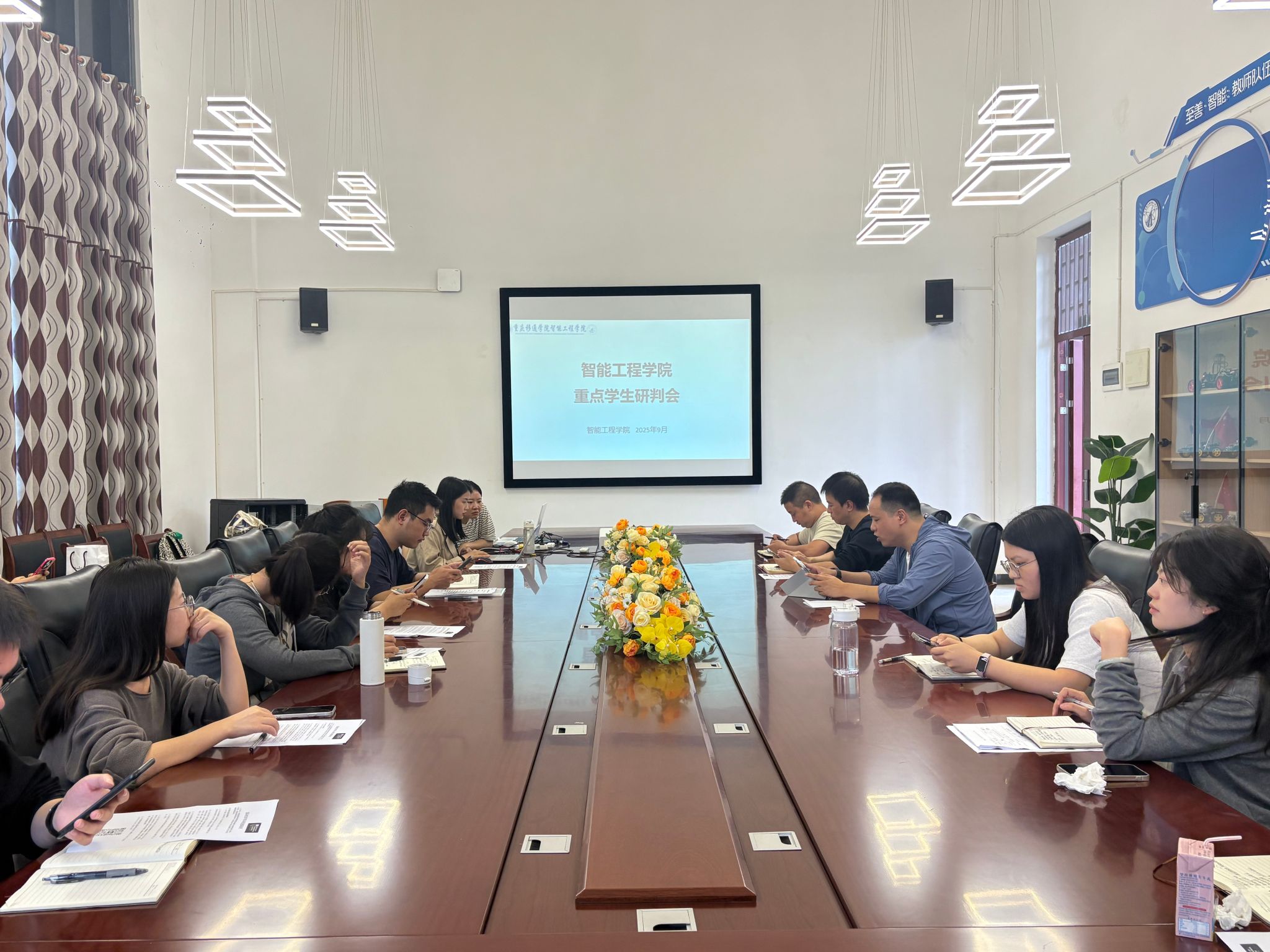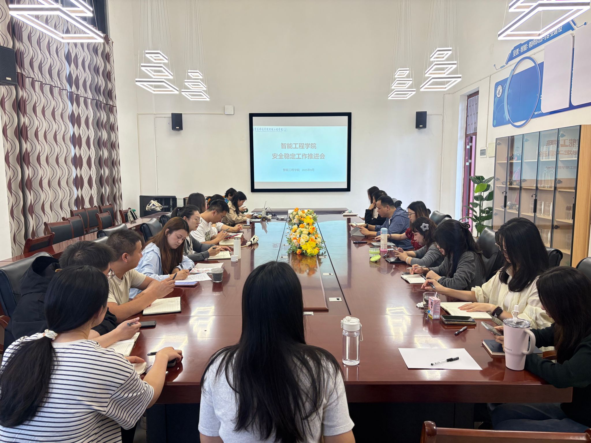 为全面落实国庆假期安全稳定工作要求,精准研判重点学生群体需求,9月29日上午9时,智能工程学院在梅若书院207会议室,召开国庆节前安全稳定工作专题会议,同步推进重点学生研判工作。学院祝玮书记携全体辅导员参会,会议由刘桃老师主持。