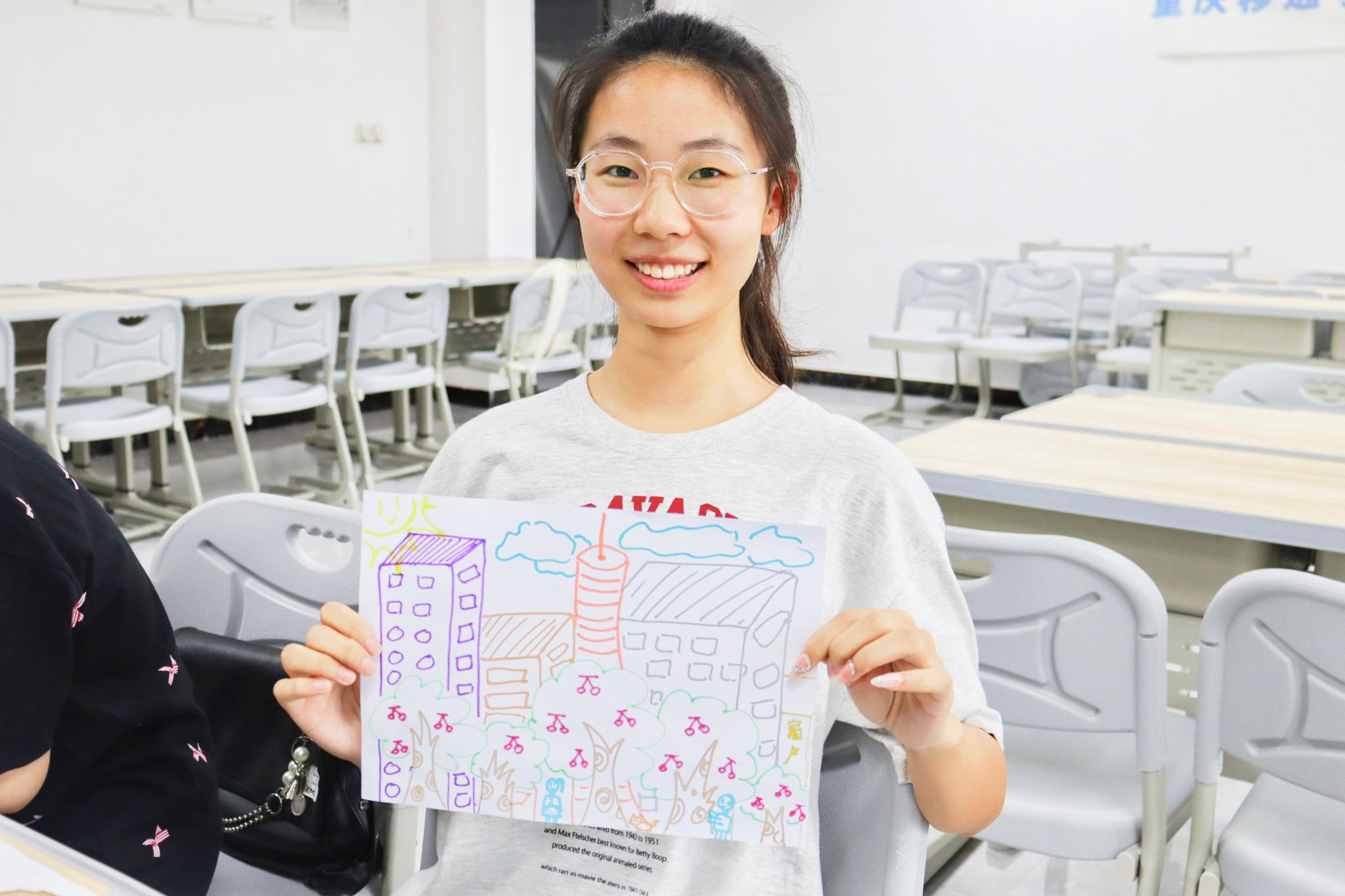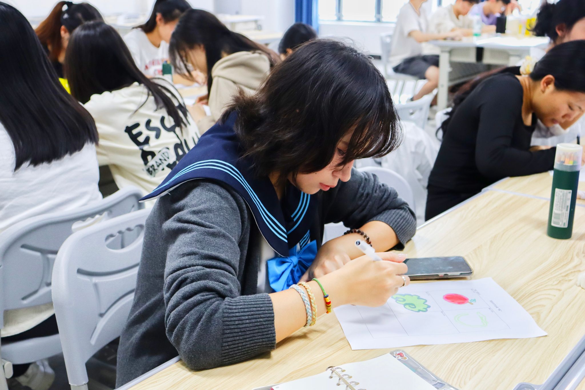 同学们画出属于自己房树人,聆听侯老师的分析讲解,房树人投射测试帮助大家进行自我探索,挖掘自己的更多可能。