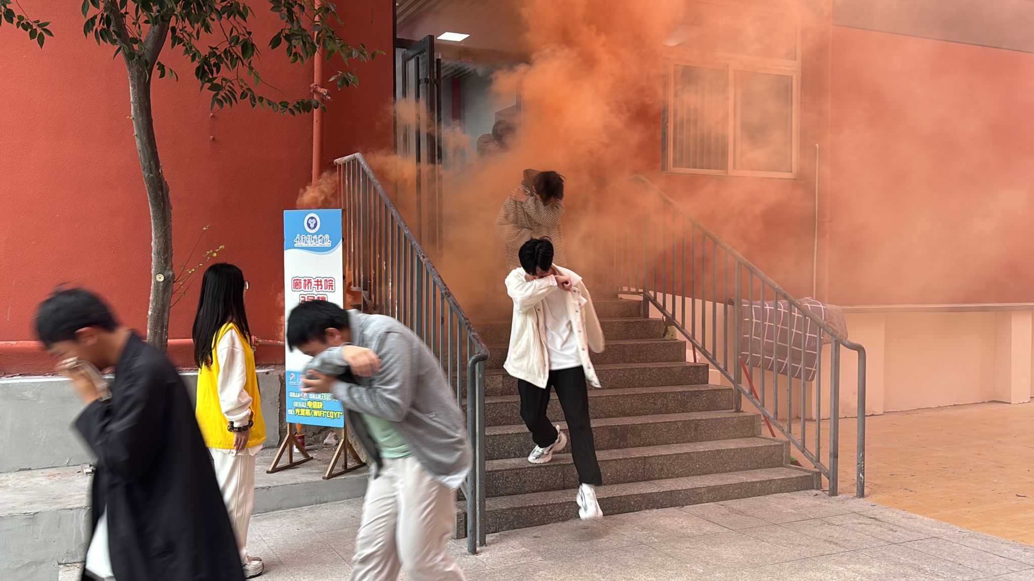 11 月 8 日下午三点,廊桥书院 2 号楼成功举办了一场旨在提高全校师生消防安全意识的消防演练活动。此次活动由学生处宿舍管理中心与保卫处联合策划并执行。