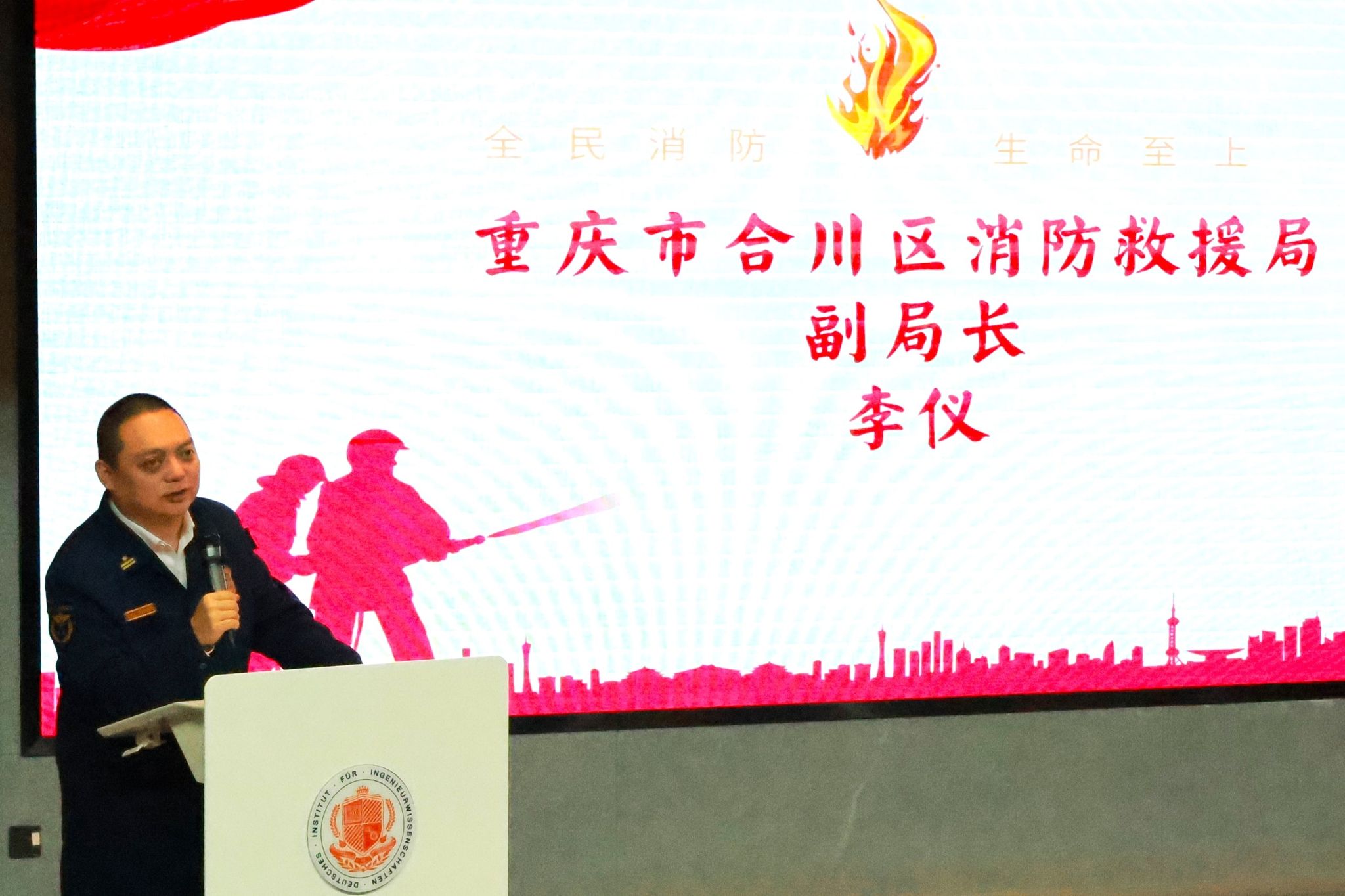 11 月 6 日下午,学生处宿舍管理中心联合德国工程学院在六度空间 - 星河音乐厅隆重举行 “全民消防,安全至上 - 119 消防安全暨公寓安全知识系列课程开班仪式”。重庆市合川区消防救援局副局长李仪、德国工程学院学工副院长李伟光、学生处宿舍管理中心副主任张旭、德国工程学院团总支书记郭淼,以及各学院共计 200 余名师生代表参加此次开班仪式。