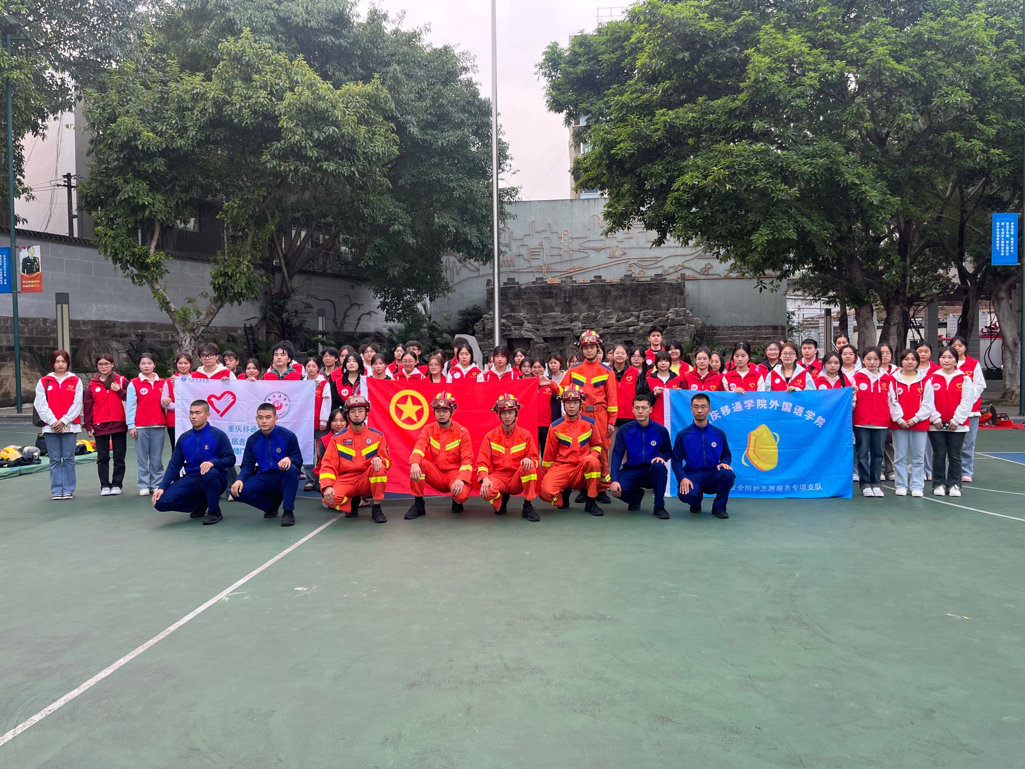 11 月 16 日下午 14 点,学生宿舍管理委员会安全推广志愿服务专项支队与外国语学院 “澜盾” 安全防护志愿服务专项支队,怀着对消防事业的尊崇与好奇,前往合川区南津街消防大队开启了一场别开生面的参观学习之旅。