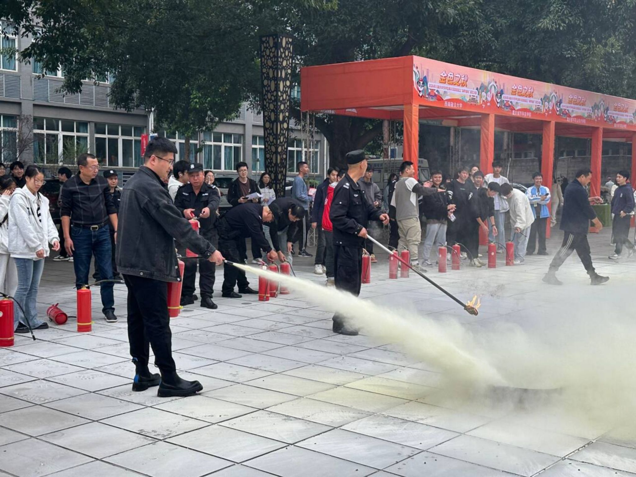 11 月 20 日下午 15:00,学生宿舍管理委员会在花果书院小广场开展了 “火焰之盾,共筑消防安全线” 消防主题活动。
