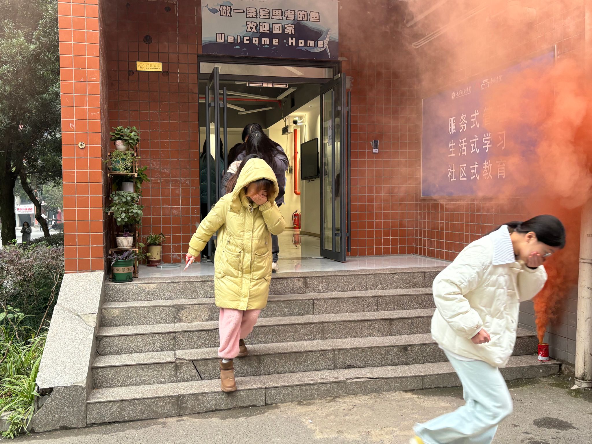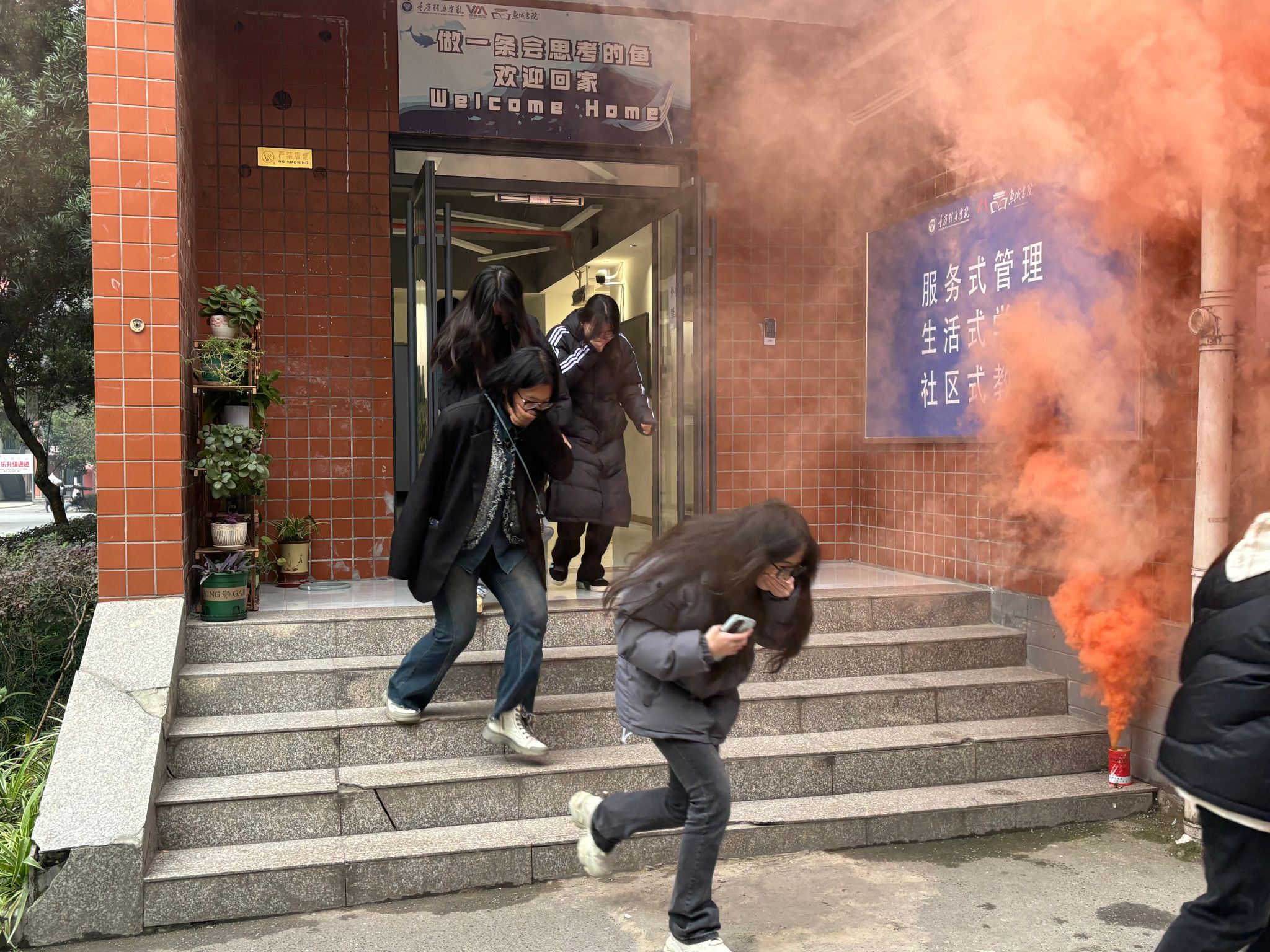 为进一步落实校园安全稳定工作,提升公寓内师生、安全巡查助理、楼层长、宿舍值班员面对火情、地震等急危事件的快速响应疏散能力,学生处宿舍管理中心联合保卫处于12月18日下午三点,在鱼城书院1号楼组织了一场紧张有序的消防疏散演练。