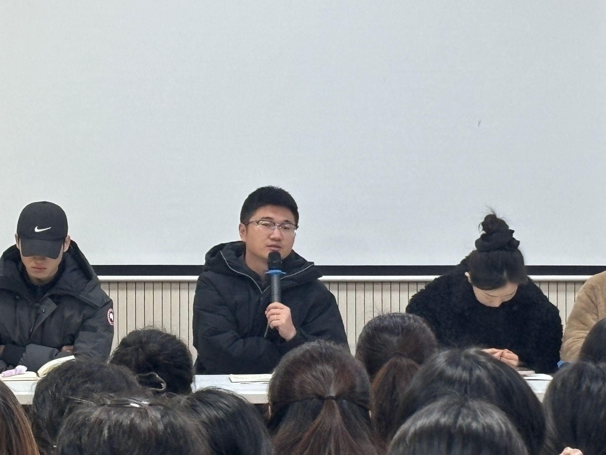 一直以来,我校高度重视学生宿舍管理工作,真心关爱学生在校的学习生活。为持续深入推进“一站式”学生社区综合管理模式建设,全面提升我校宿舍值班员队伍的整体业务水平和素质能力,确保学期期末及寒假宿舍社区各项工作平稳有序开展,将科学管理与用心服务落到实处,在寒假假期来临之际,2025年1月10日上午9点,学生处宿舍管理中心在心理健康中心团辅室召开了2024年度值班员总结大会,强调了寒假期间值班员专项工作,为今后工作做出计划铺垫。会议由宿舍管理中心副主任张旭主持,宿舍管理中心全体老师及全校值班员共同参与了此次会议。