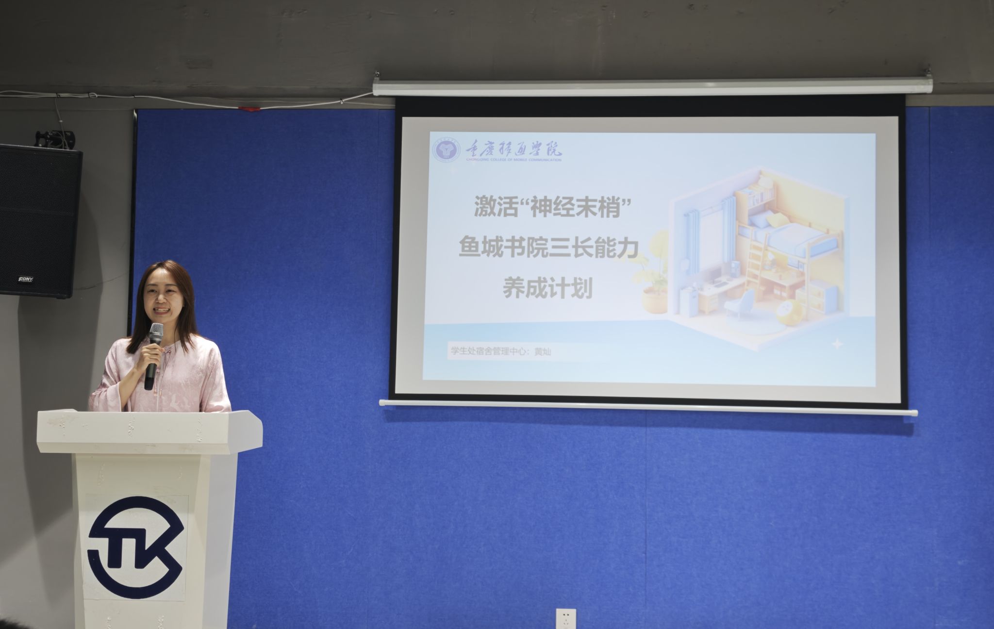 以一站式社区建设、双院融合、各部门协同发展为背景,同时助力于推进本科教育教学评估工作,进一步提升宿舍管理水平,增强学生自律意识与责任感,帮助2024级“鱼城人”深入了解宿舍管理制度,助力新生养成计划,打造一支素质过硬、责任心强的基层学生干部队伍,同时营造安全、文明、和谐的宿舍环境,4月18日,学生处宿舍管理中心在天空书院长空报告厅召开鱼城书院“三长”培训会。本次活动由学生处宿舍管理中心黄灿老师主讲,基建后勤处科长彭淑梅老师、学生处宿舍管理中心副主任张旭老师、保卫处罗倩老师、鱼城书院杨钊熙老师,以及鱼城书院近100名2024级楼长、层长、寝室长参加。