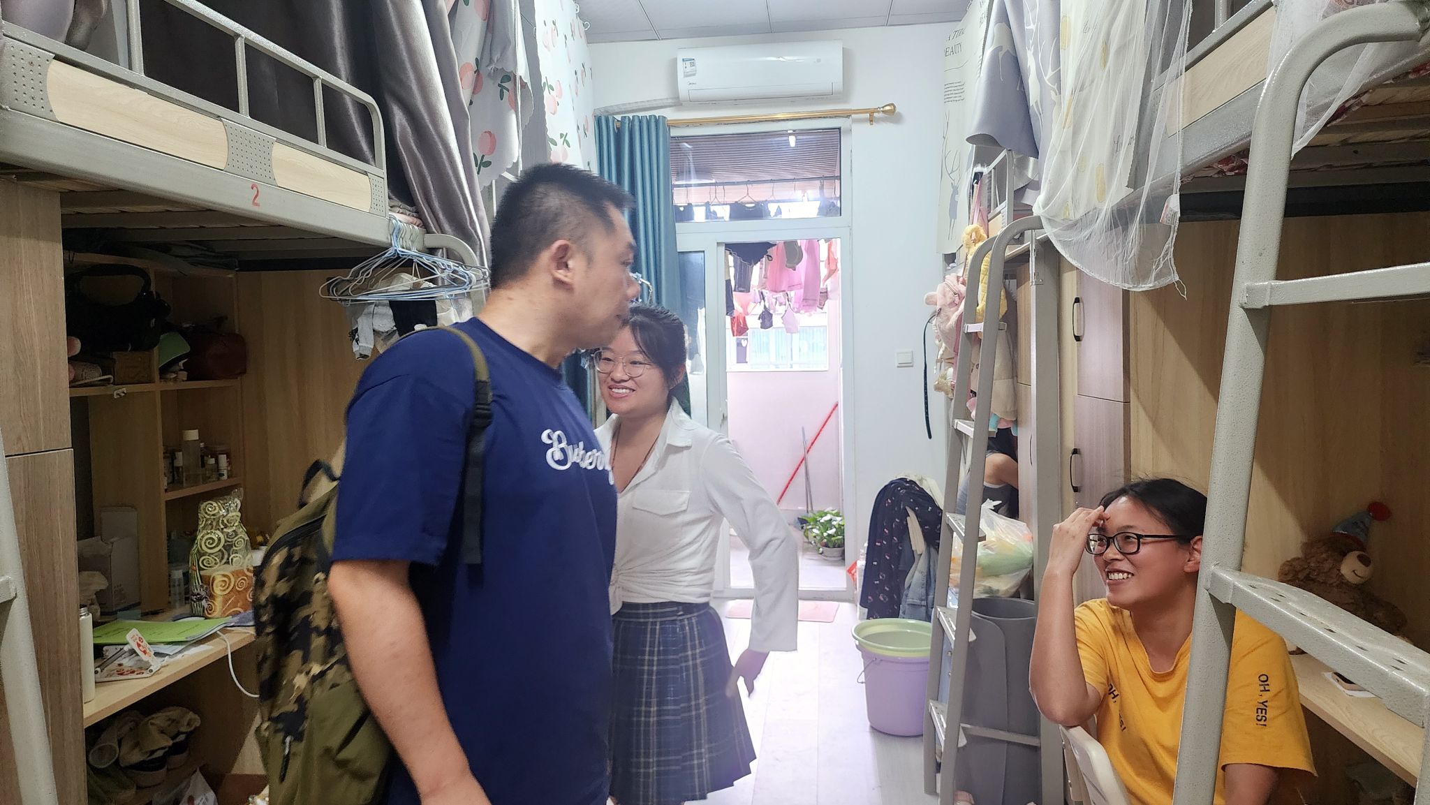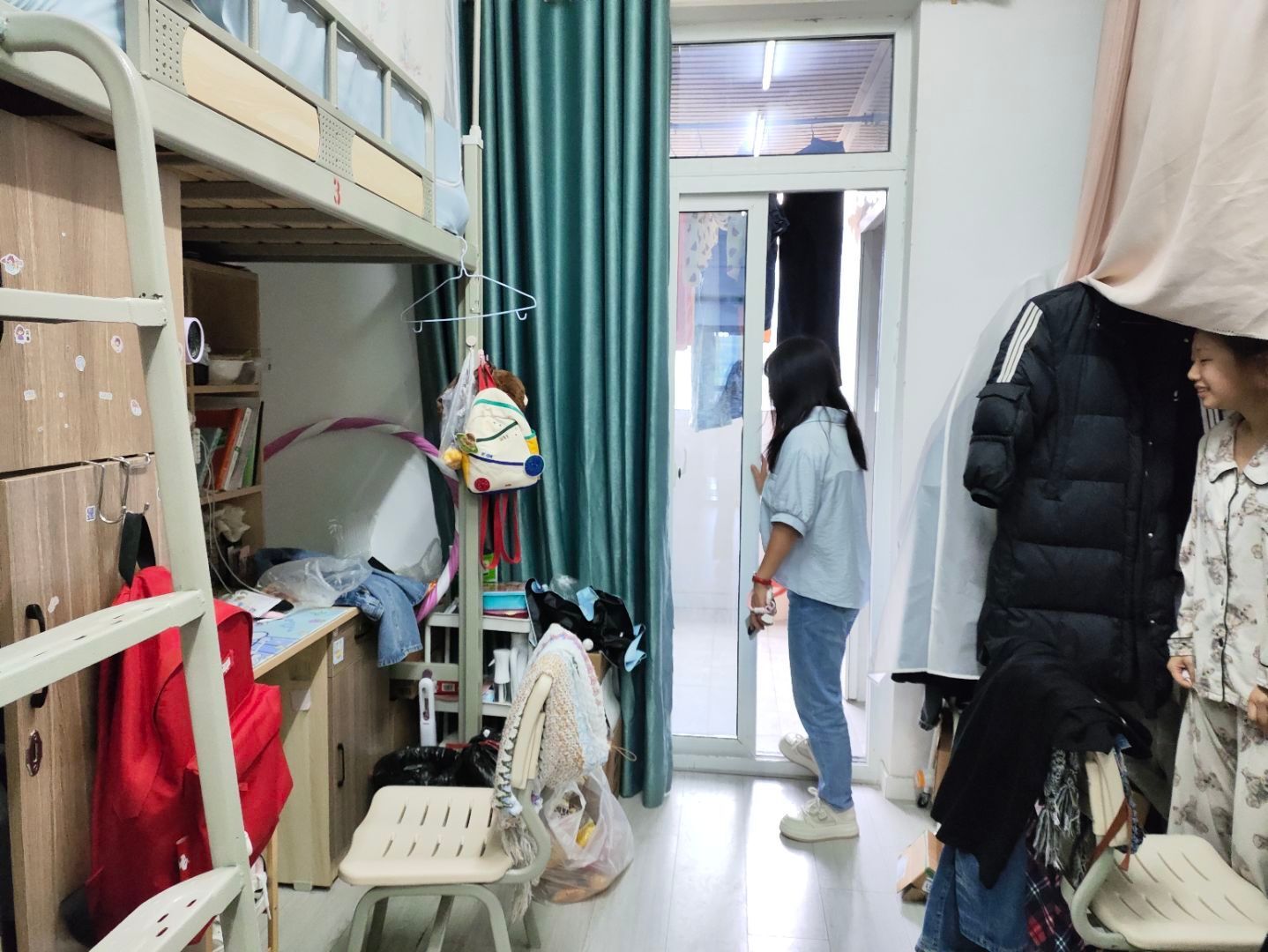 在检查过程中,程希老师和翁焰老师与同学们亲切交流,询问大家五一假期的生活情况和学习计划,了解同学们在生活中遇到的问题和困难,并鼓励大家要合理安排时间,保持良好的生活作息,积极营造温馨和谐的宿舍环境。同学们也热情地与辅导员们交流,现场氛围轻松融洽。