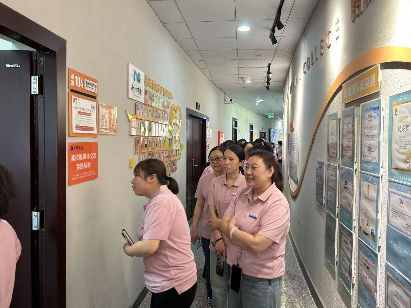为营造积极向上的工作氛围,增强值班员团队的凝聚力和归属感,宿管中心将值班员的工作服着装照与着装规范示例制作成精美的文化墙,并在各宿舍楼栋上墙展示。不仅是对值班员形象的直观呈现,让值班员们在工作中时刻感受到团队的荣誉与责任,激励大家以更加饱满的热情和更加严谨的态度投入到宿舍管理工作中。同时,成为了宿舍管理中心对外展示形象的一扇窗口,让广大师生更加直观地了解到宿舍管理团队的专业与风采。