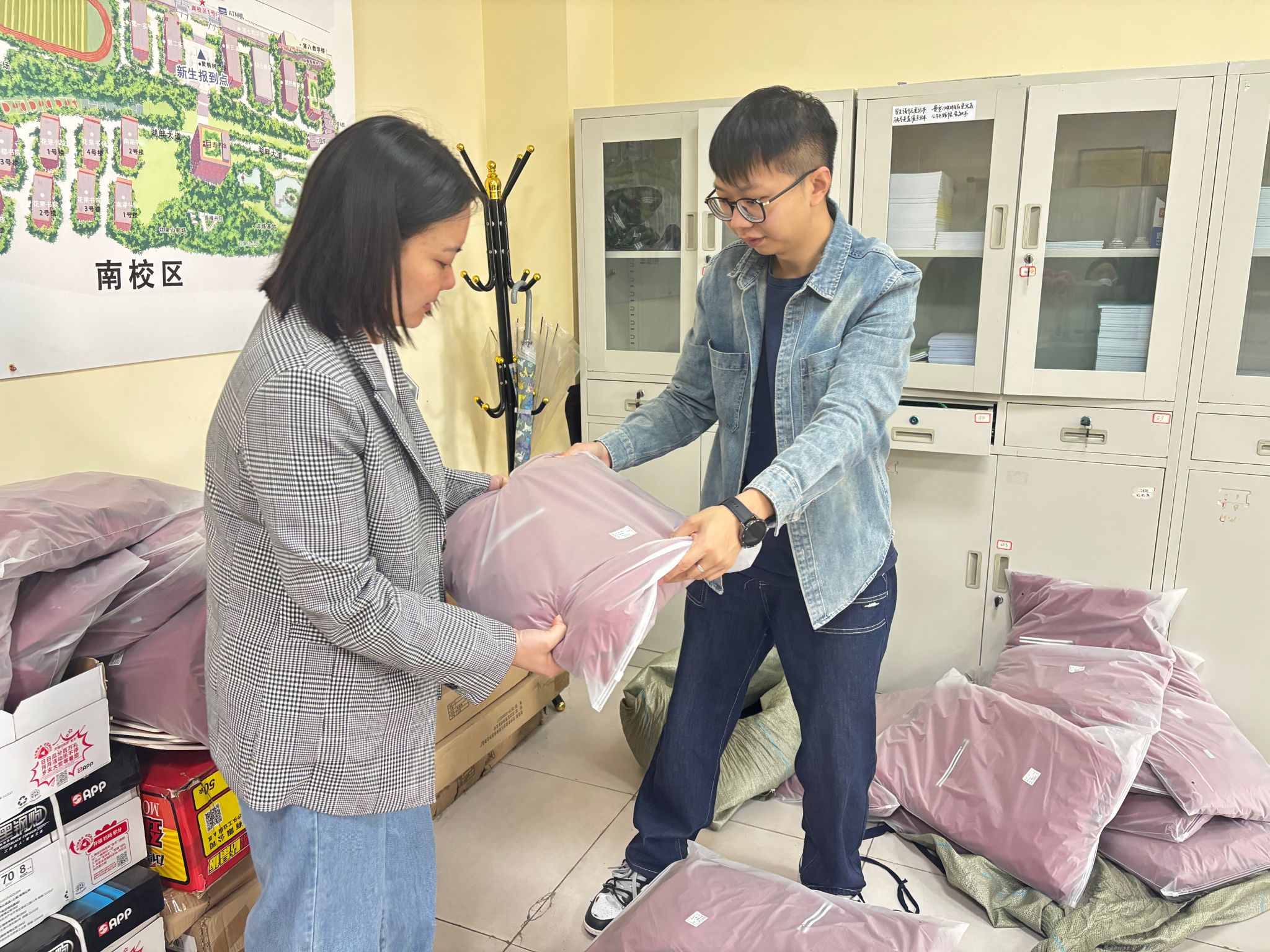 为树立宿舍值班员整齐划一、专业规范的服务形象,学生处宿舍管理中心精心筹备,为102名宿舍值班员统一申发了工作服。此次发放的工作服在设计上充分考虑了值班员的工作需求与舒适度,款式简洁大方,颜色沉稳得体,既便于日常活动,又能展现宿舍管理队伍的专业性。