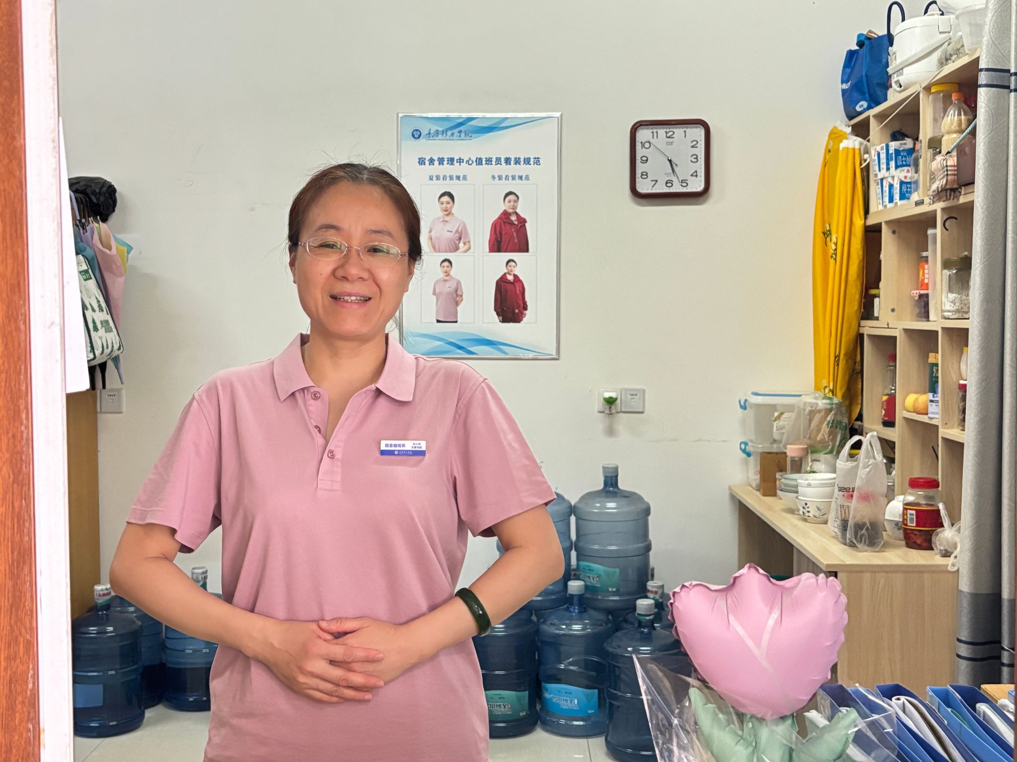 为进一步规范宿舍管理,提升服务质量与团队形象,学生处宿舍管理中心自4月起,开展了一系列针对宿舍值班员的形象与制度优化工作,通过统一着装、规范管理、文化展示等举措,为校园宿舍管理注入了新的活力。