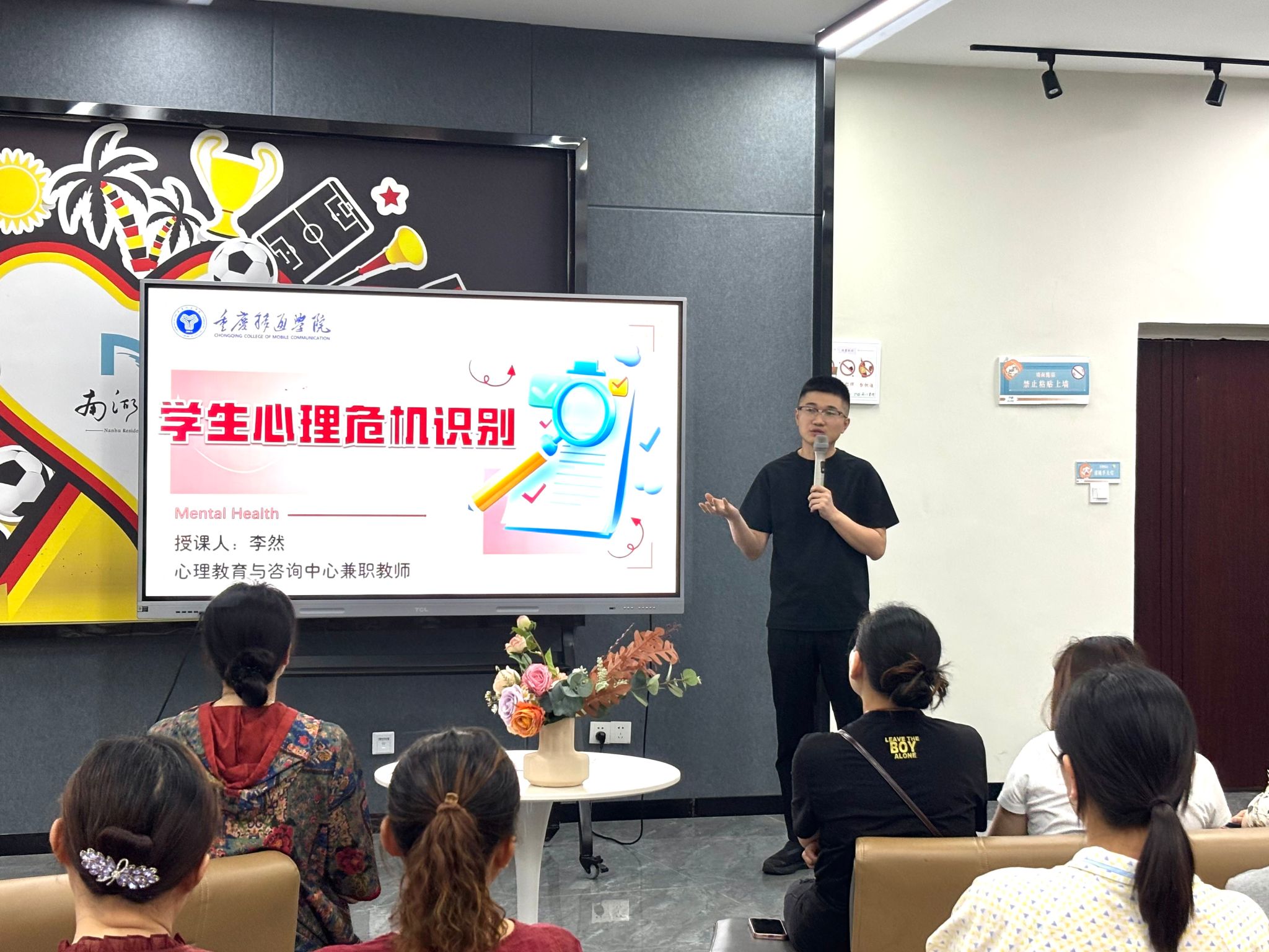为进一步提升宿舍值班员在学生心理危机干预中的专业能力,构建更加完善的校园心理健康防护网络,宿舍管理中心于6月3日在南湖书院193室成功举办了第三期宿舍值班员学生心理危机专项培训。本次培训由"心育晴天"辅导员工作室成员、心理健康教育与咨询中心兼职教师李然主讲,学生处宿舍管理中心副主任张旭全程指导,35名宿舍值班员参与学习。