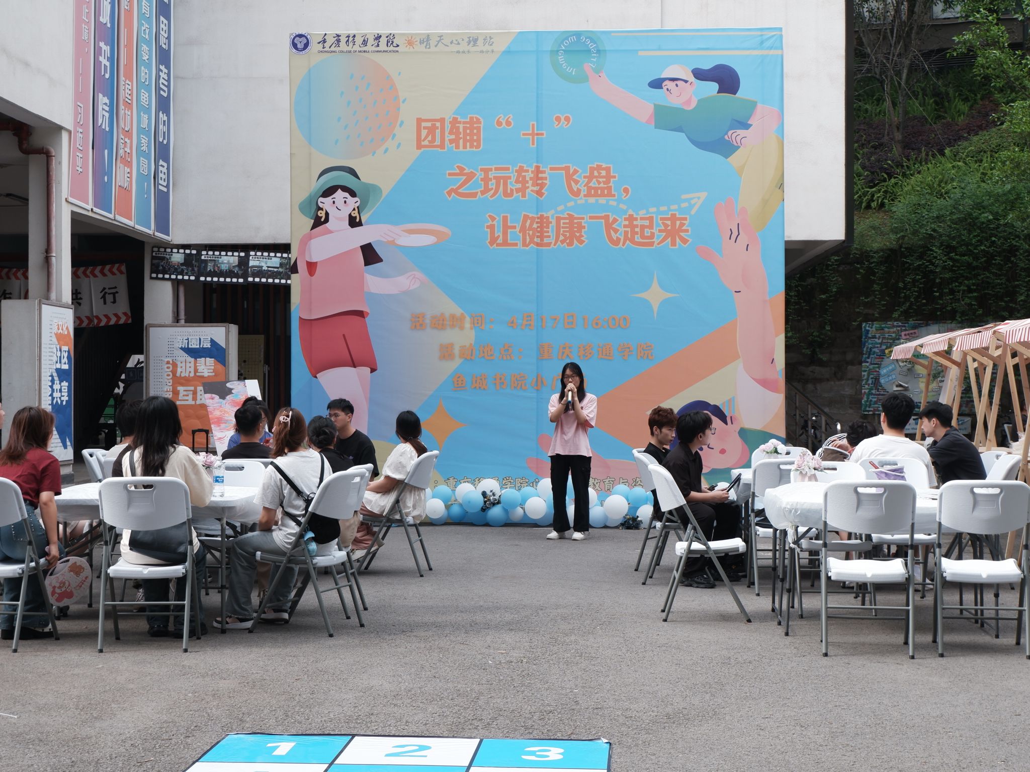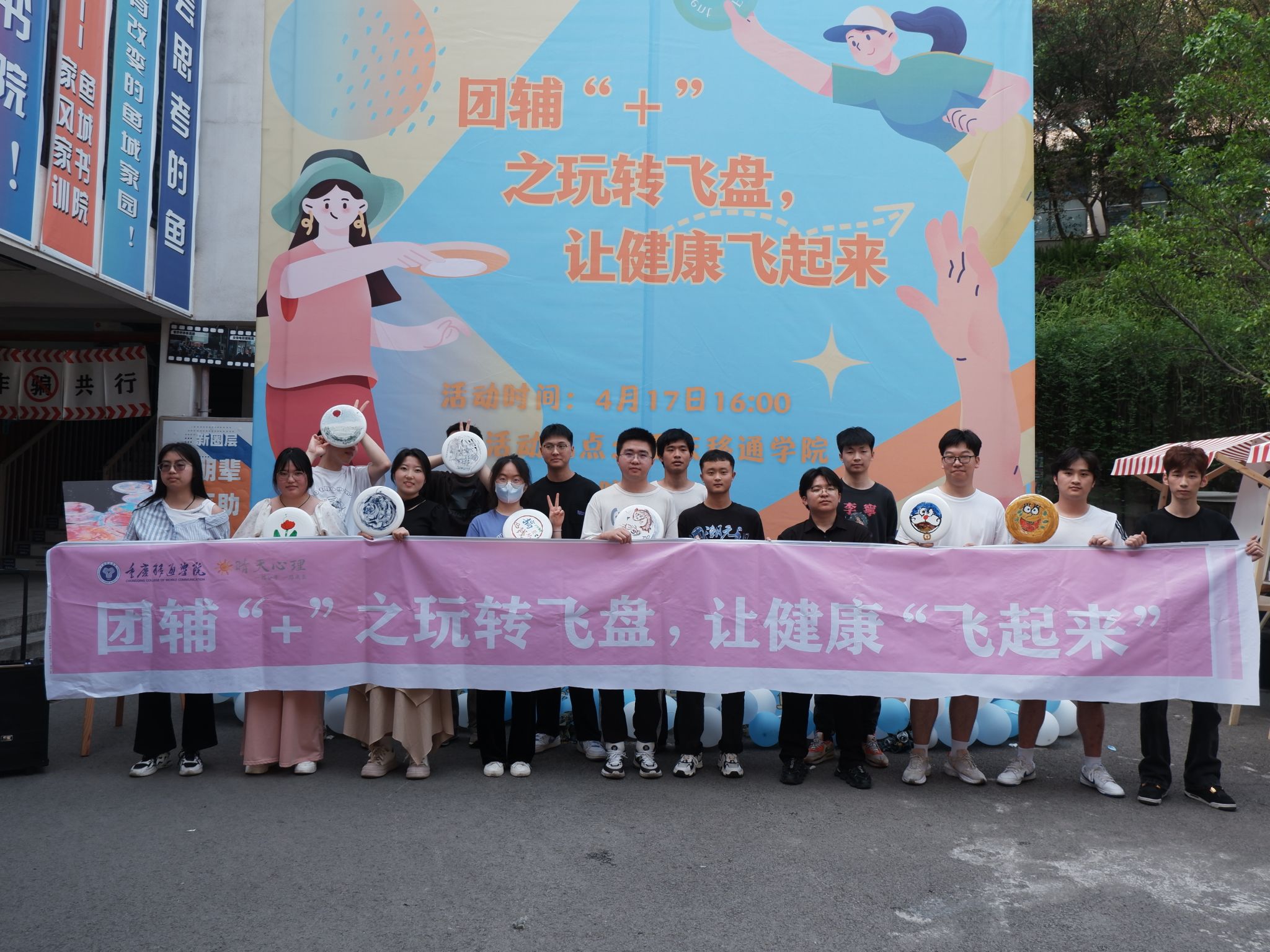 为促进学生个人成长和心理健康,构建“一站式”社区中的心理健康新生态,4月17日,鱼城书院联合学校心理健康教育与咨询中心在鱼城书院小广场开展以“让快乐飞一会儿”为主题的心理团辅活动。通过热身破冰、飞盘涂鸦、飞盘运动等互动环节,用绘画解压、运动解压的方式,拉近朋辈距离,加速团队融合,提升沟通和配合能力,营造身心健康、阳光友爱的书院社区。