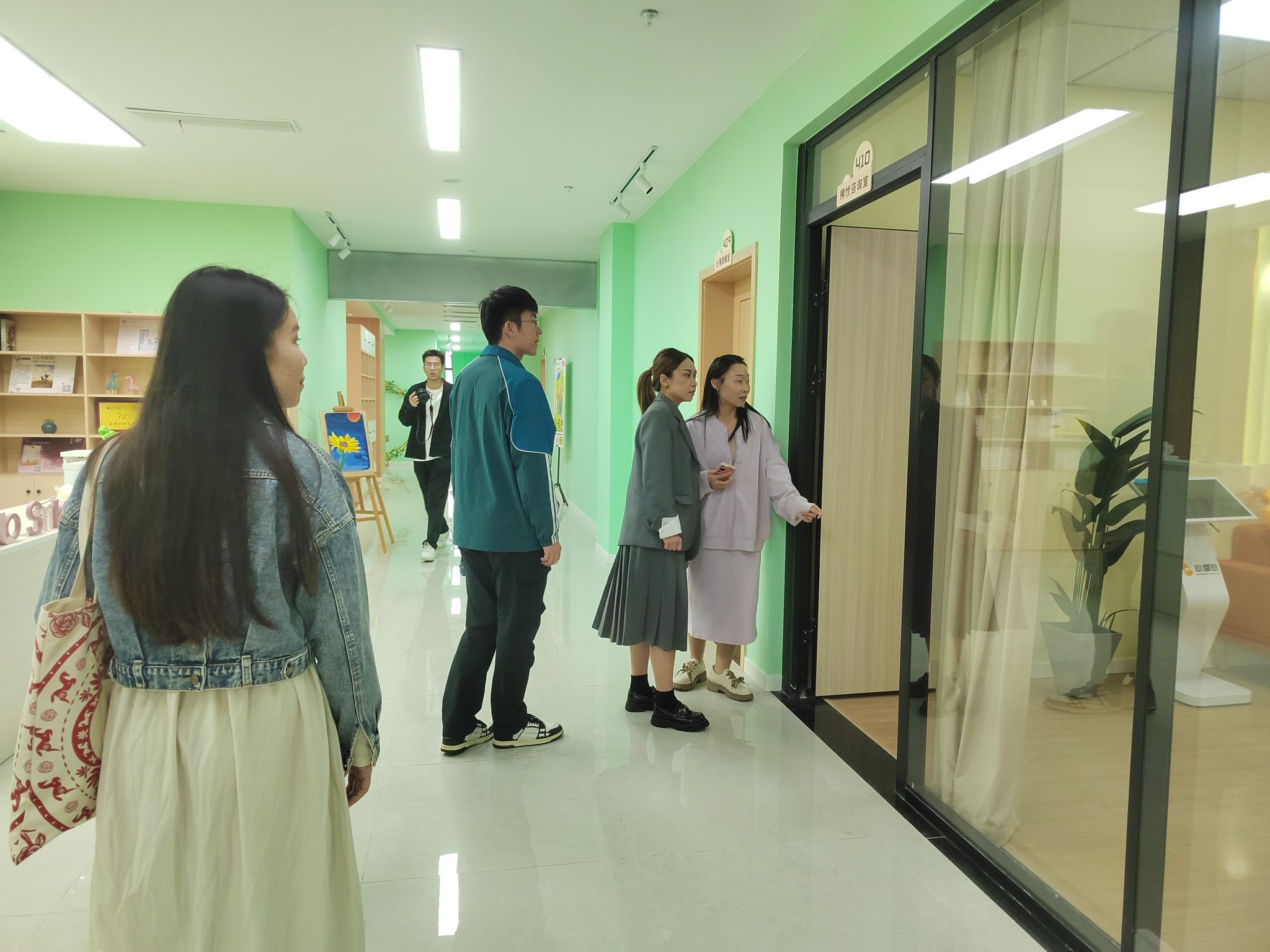 接着,双方参观了綦江校区的书院以及书院内部的心理健康功能室。林红主任介绍了书院心理功能室的管理、运作以及开展的学生活动,加深了大家对“1个心理健康中心+N个书院心理健康功能室”这一运作模式的了解。交流会的最后双校区成员在心理中心大门合影留念。此次交流活动,不仅是一次知识与经验的碰撞,更是对心理健康教育事业发展的共同承诺,旨在进一步强化对重庆移通学院学生心理健康问题的关注,完善心理健康教育体系,携手绘制心理健康教育的新蓝图。