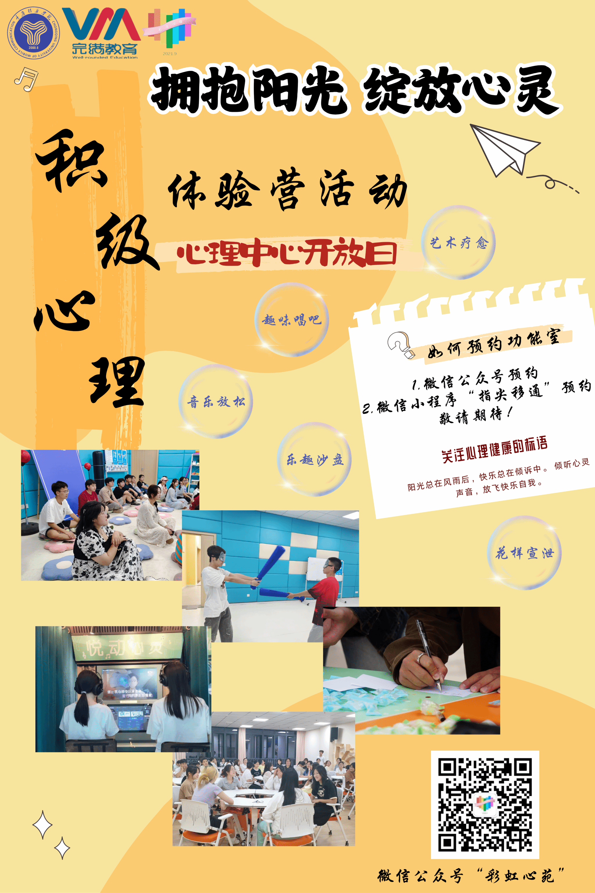 为积极响应《教育部公办厅关于全面加强和改进新时代学生心理健康工作专项行动计划(2023—2025年)》,落实《重庆移通学院“时代新人铸魂工程”实施方案》中“学生积极心理品质培养计划”相关要求,进一步提升学生心理健康意识、培养积极心理品质,营造积极向上的校园心理氛围。在金秋十月的暖阳下,重庆移通学院綦江校区心理健康教育与咨询中心(以下简称心理中心)以“拥抱阳光,绽放心灵”为主题,于2024年10月10日至12日在南州食堂四楼成功举办了心理中心开放日暨积极心理体验营活动。